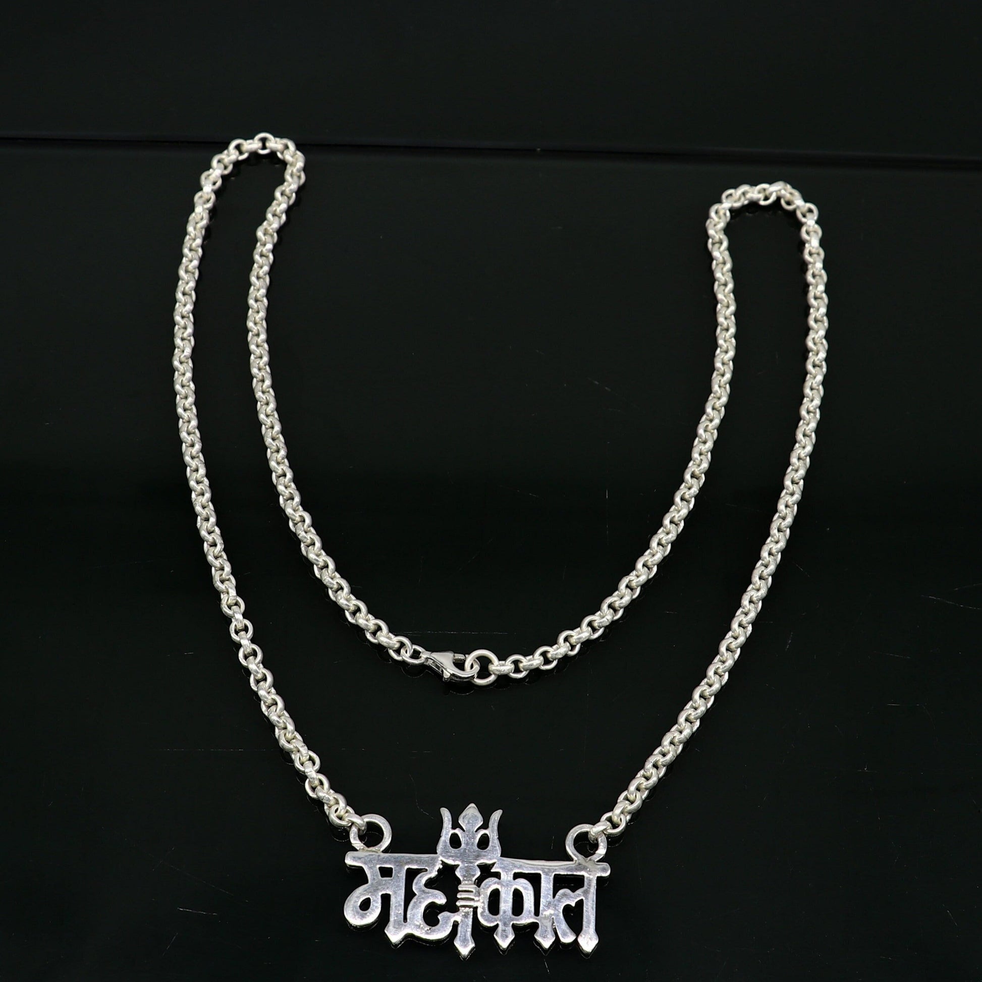 925 sterling silver handmade Lord shiva Mahakal Name pendant, amazing stunning divine Mangalsutra necklace, blessing shiva necklace set213