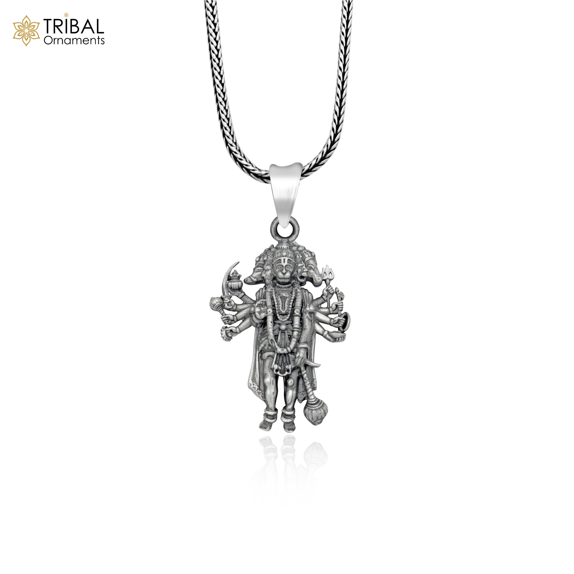 925 sterling silver handmade lord Panchmukhi Hanuman ji Pendant with chain tribal jewellery nsp1007