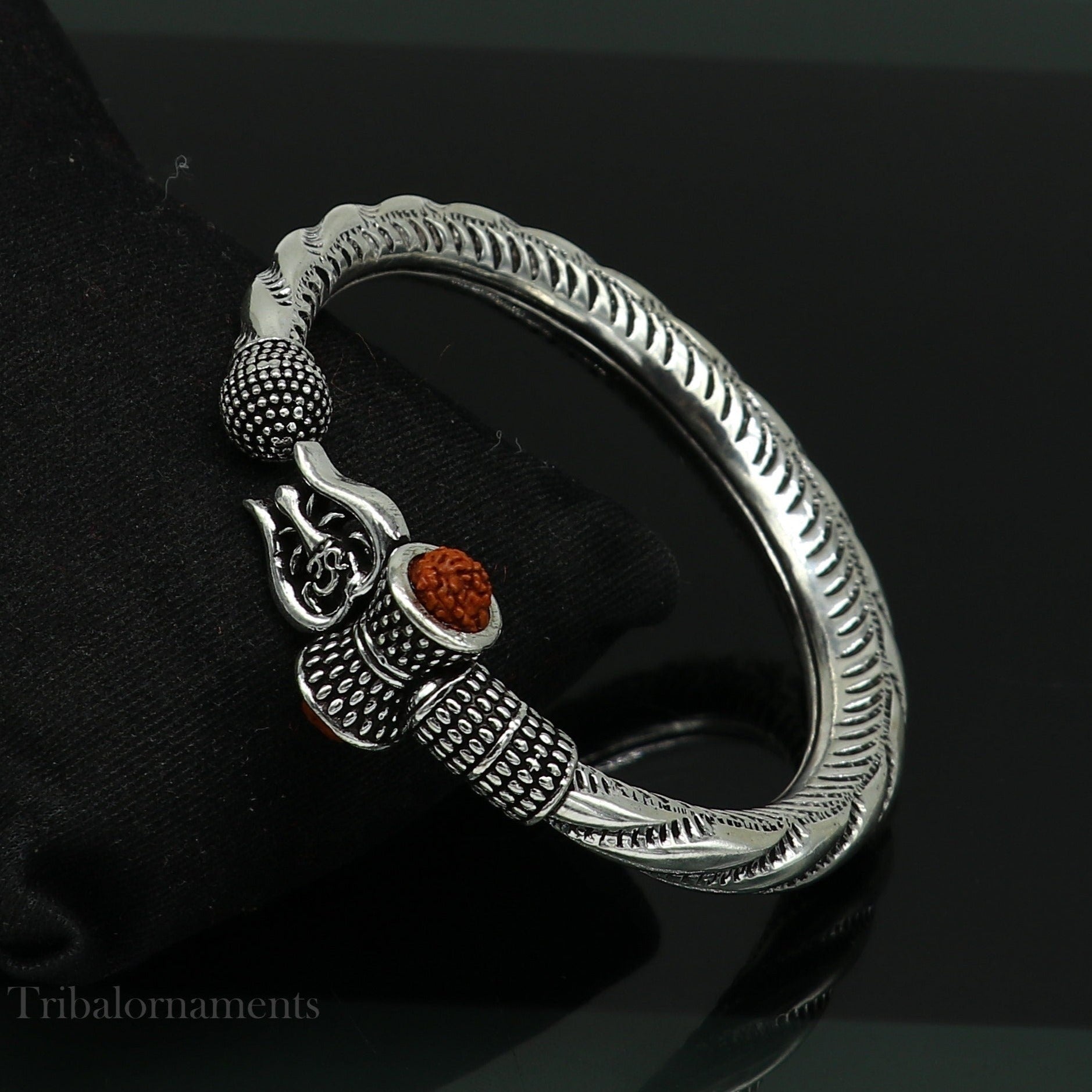 925 Sterling silver handmade Lord Shiva trident trishul trishool kada bangle bracelet with natural Rudraksha customized kada nsk381