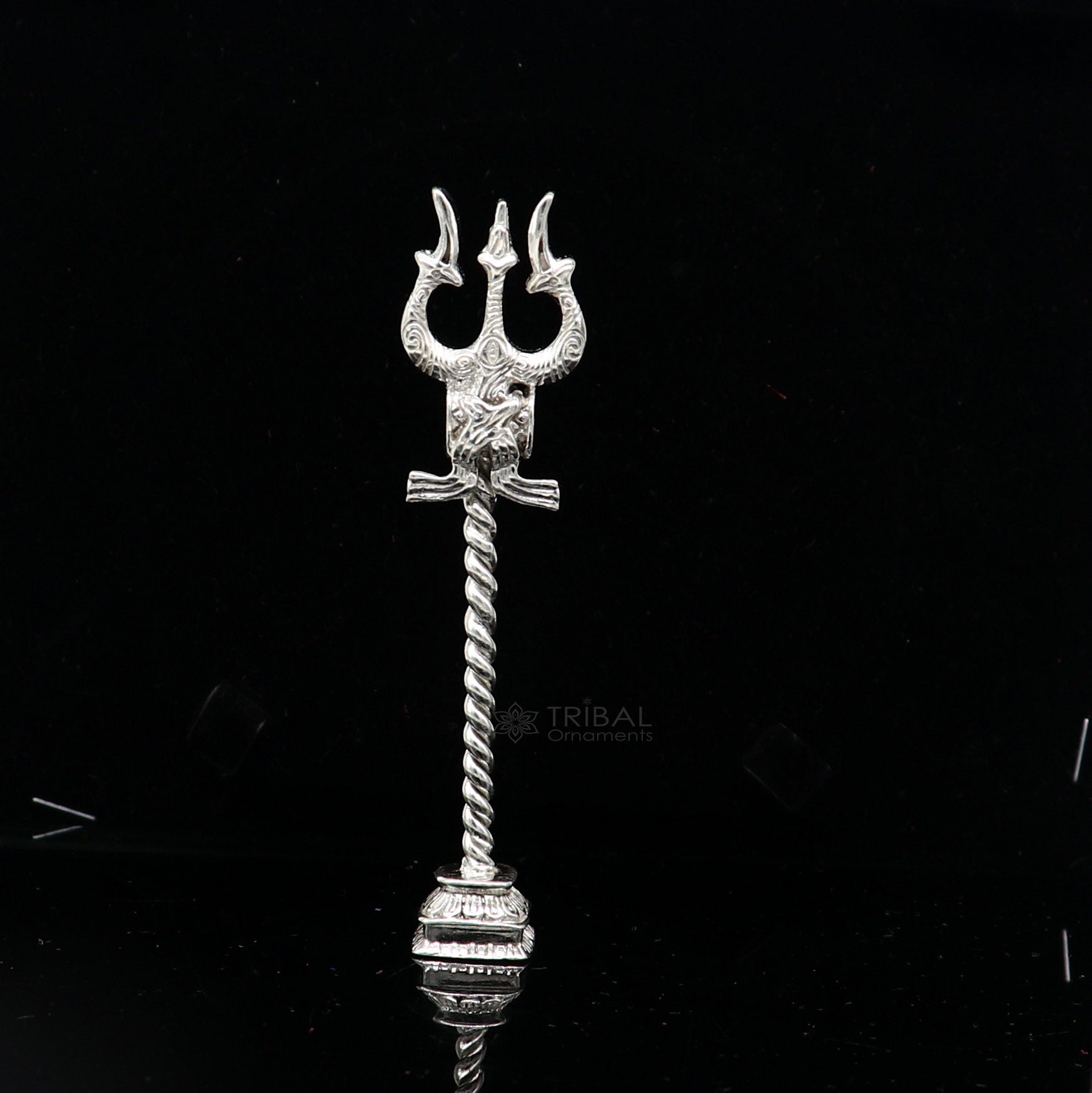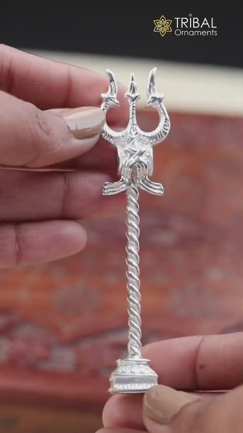 925 Sterling silver handmade lord Shiva trident with Damaru, fabulous craftsmanship Mahadev trishul, best collectible puja article art641