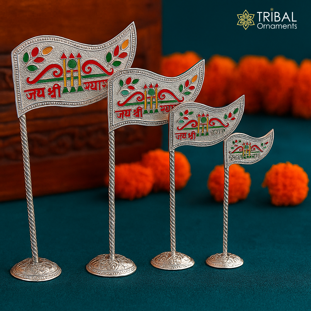 925 sterling silver handmade lork Khatu Shyam Dhwaja or flag, silver "jai shree shyam" flag best way for gifting to idols or kriahna su1018