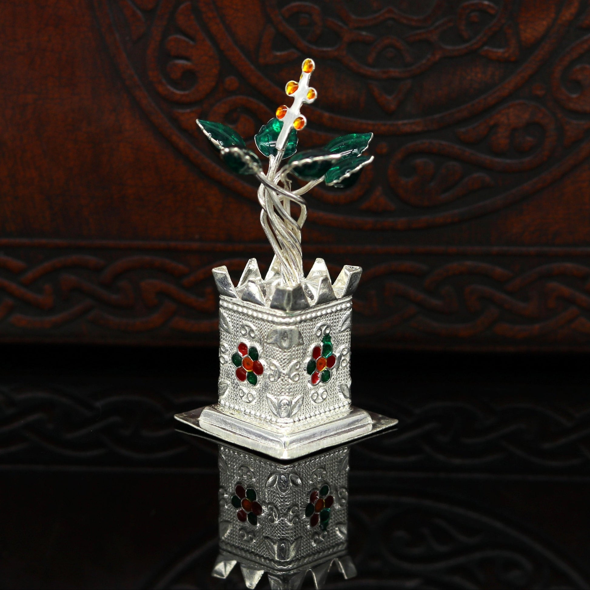 925 sterling silver handmade mini tulsi plant basil rosary plant for puja temple article, excellent customized silver utensils article su16