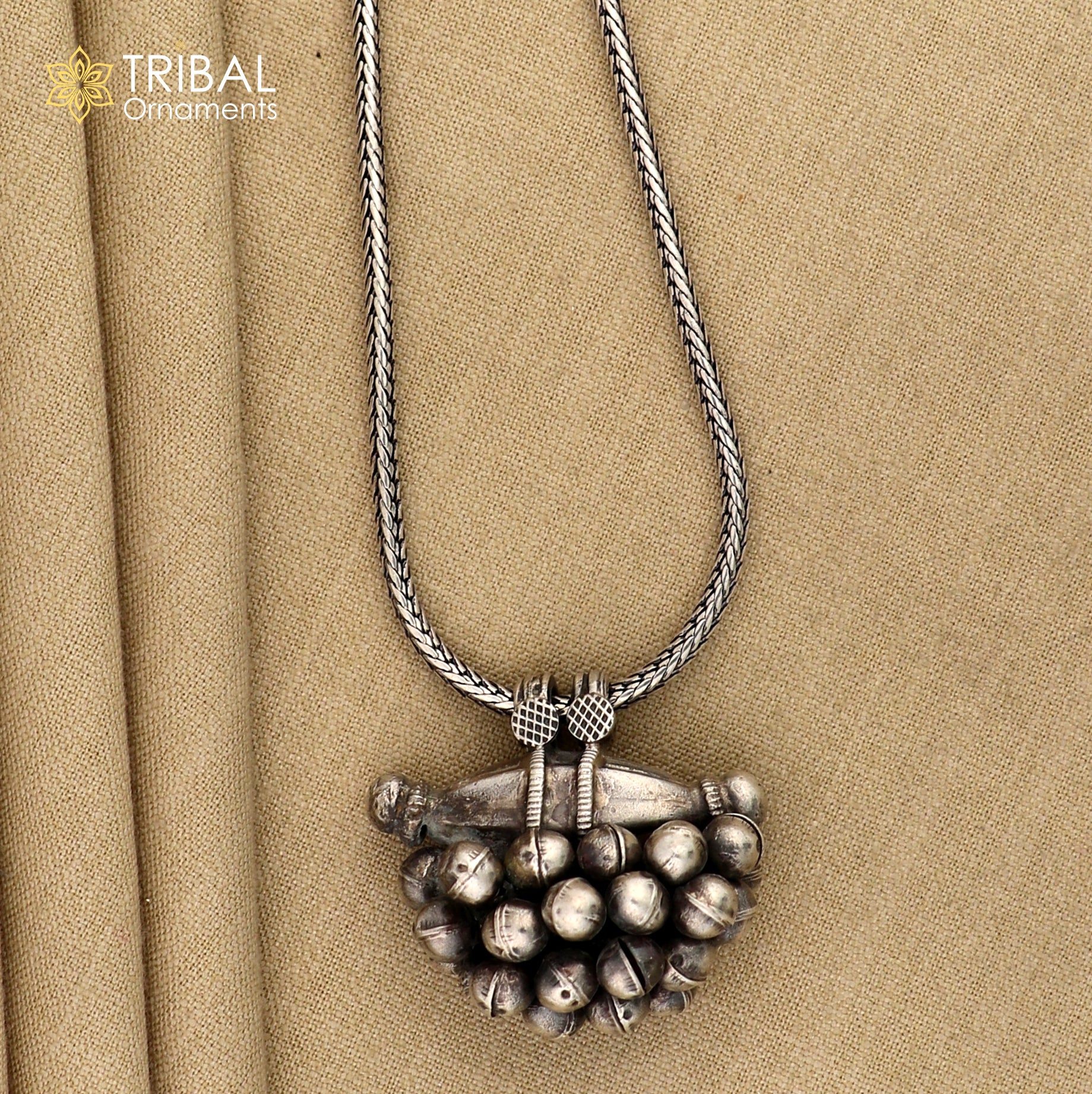 925 sterling silver vintage design amulet pendant hanging bells tribal ethnic necklace jewelry nsp303