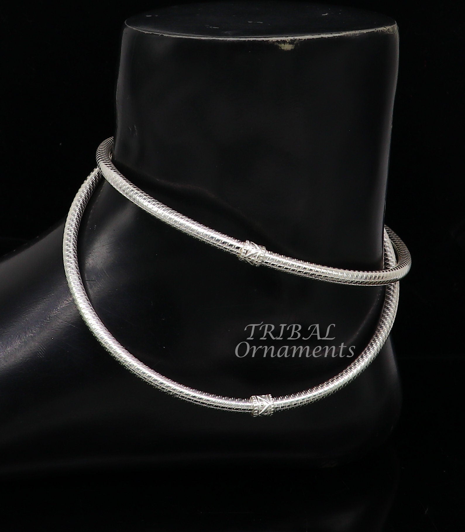 925 Sterling silver Handmade plain design Traditional cultural modern trendy foot kada anklets bracelet, best gift for brides nsfk94