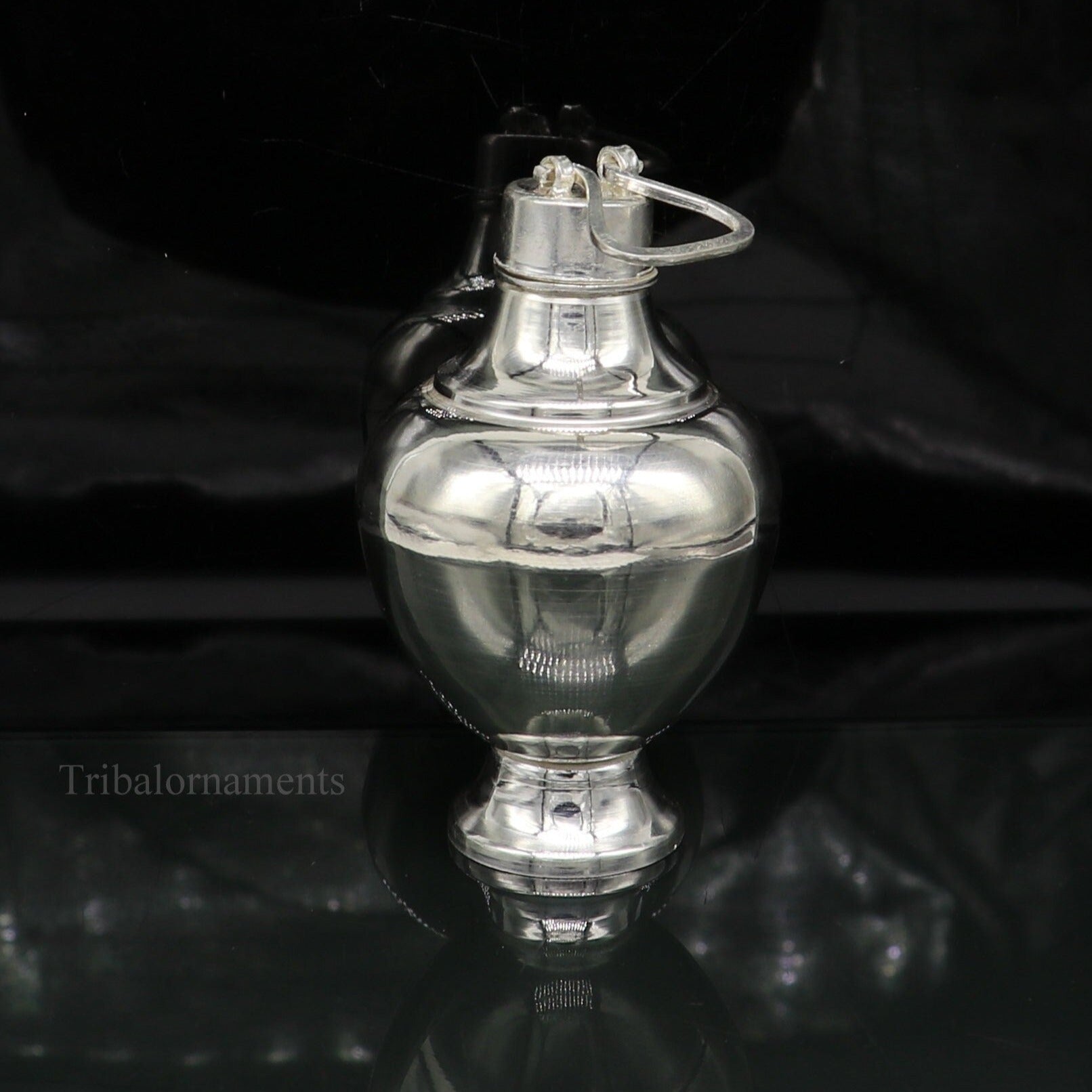 925 sterling silver handmade plain glossy Gangjali, Silver Gangajal Patra, best silver water pot kalash puja utensils Diwali special su418
