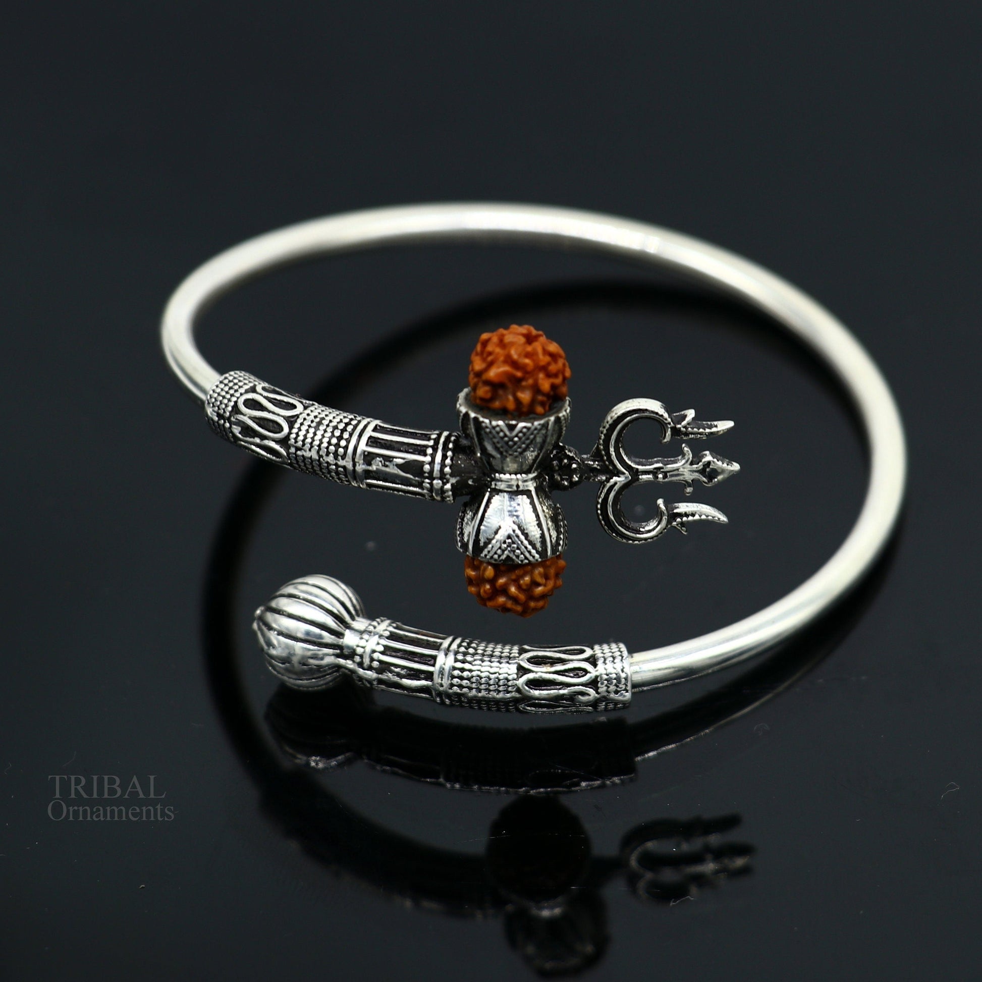 925 sterling silver handmade Shiva Trishul bangle bracelet Rudraksha kada, excellent Bahubali trident kada bracelet gift nsk427
