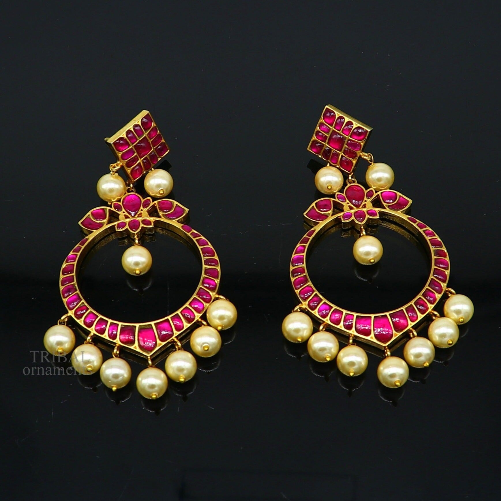 925 sterling silver handmade stylish chandbali earring gold guild/plated stud earrings, gorgeous handing pearl, best gifting jewelry s1013