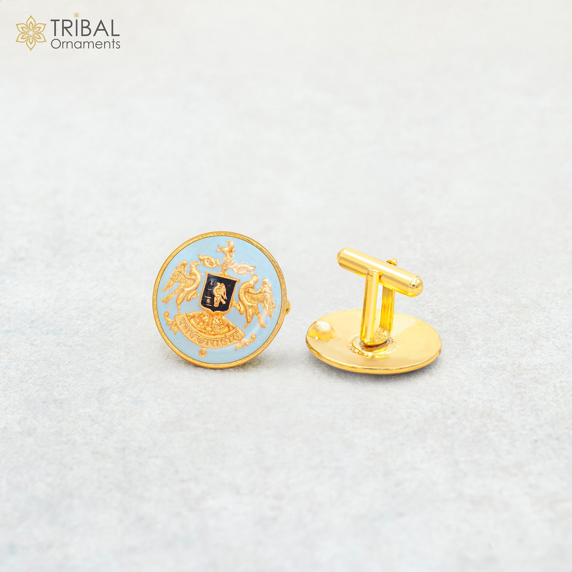 925 Sterling silver handmade stylish minakari design gold polished cufflinks set of 2 pc for men's coat or suit, best jewelry for all occasions btn98