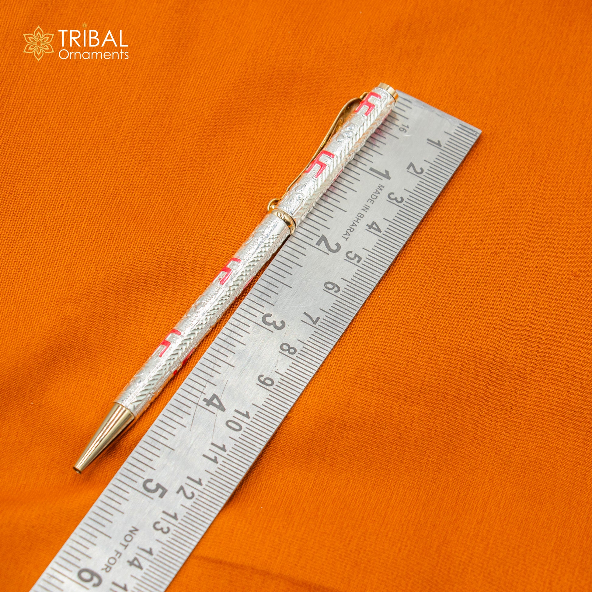 925 Sterling silver handmade swastik design writing ball pen, best silver gifting article from india art807