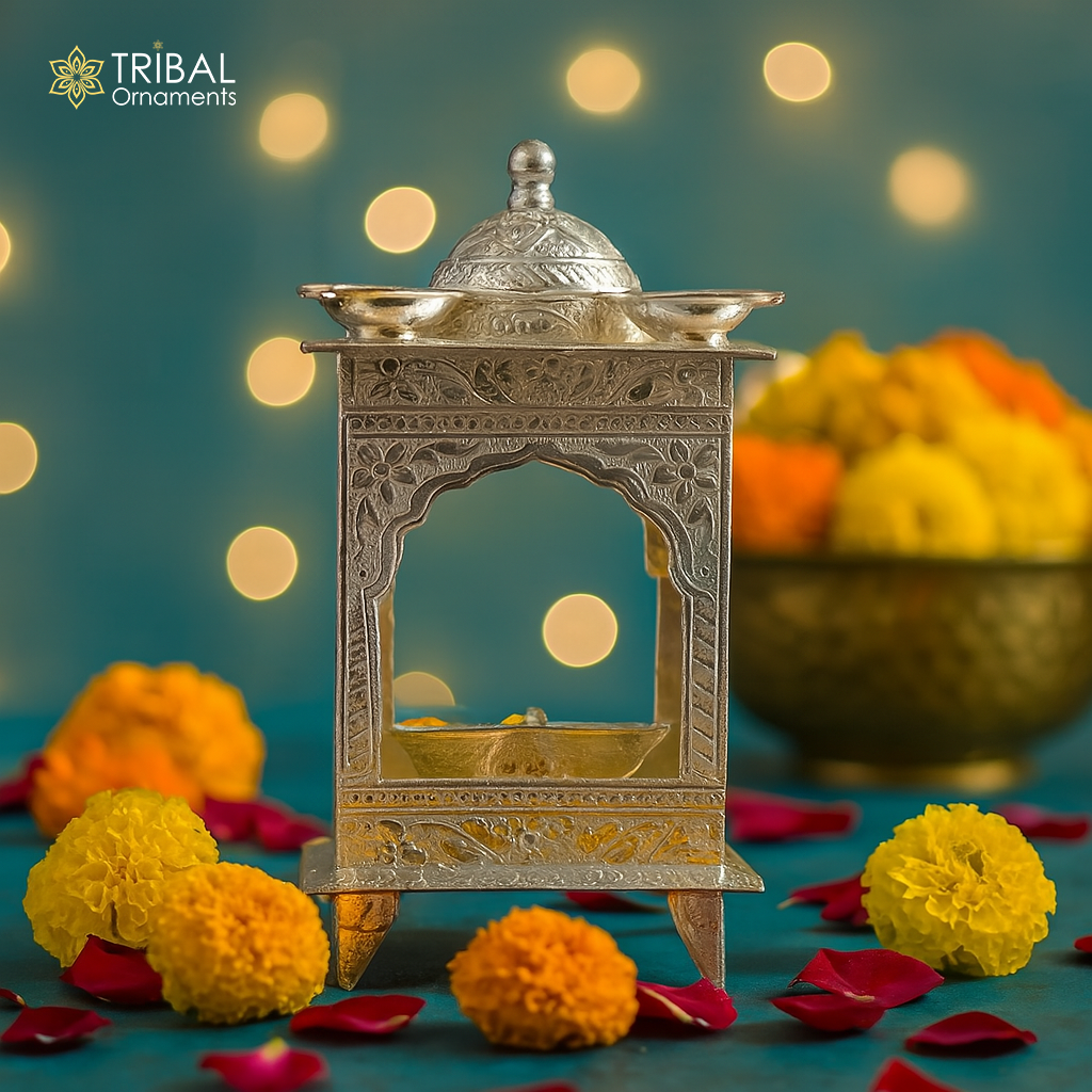 925 sterling silver handmade vintage antique design Hatri, best puja article with 5 lamp on it, best home temple decor utensils india su421