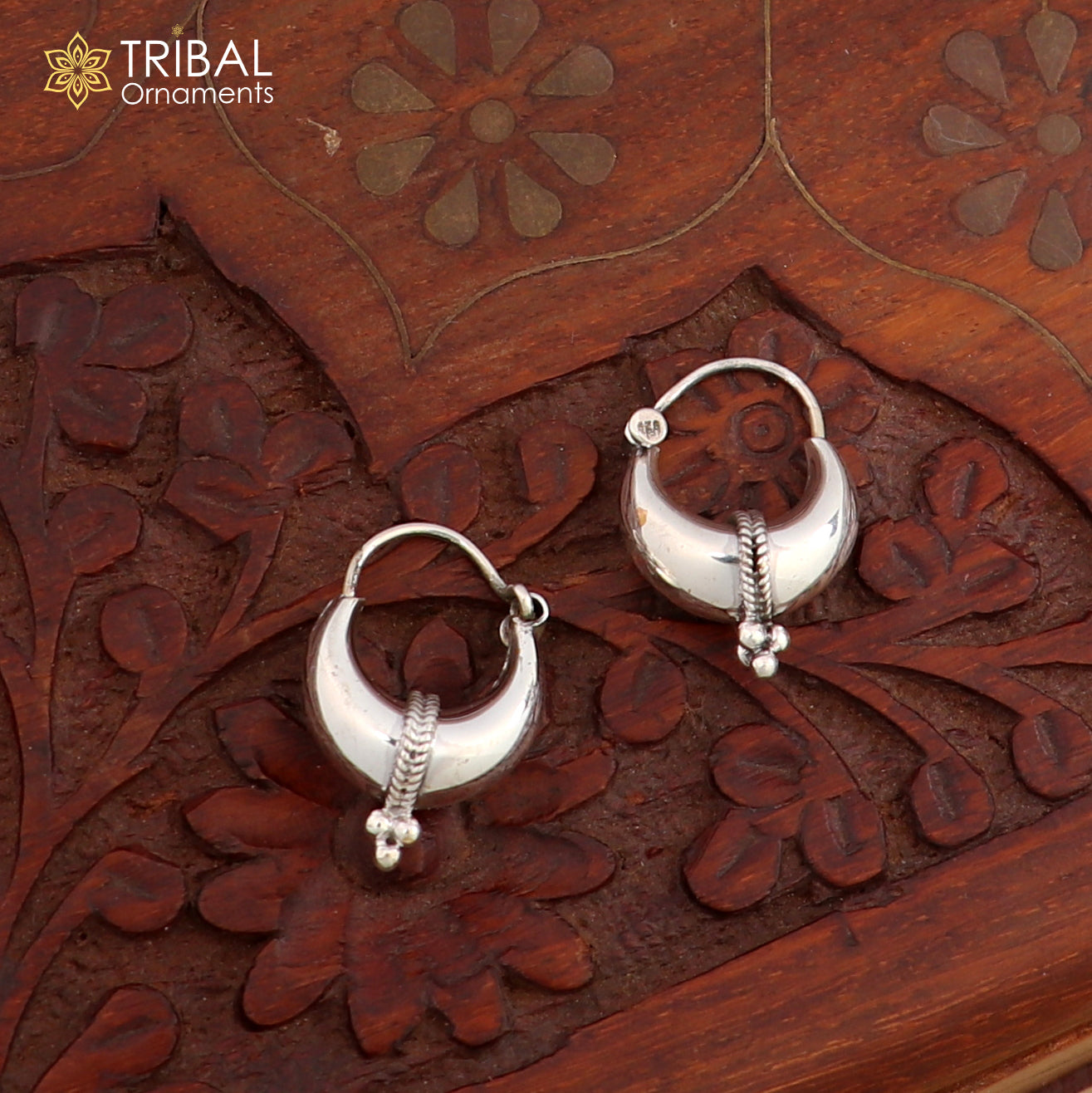 925 sterling silver Handmade vintage ethnic style hoops earrings Kundal unisex tribal stylish unique Bali jewelry from India ear1223