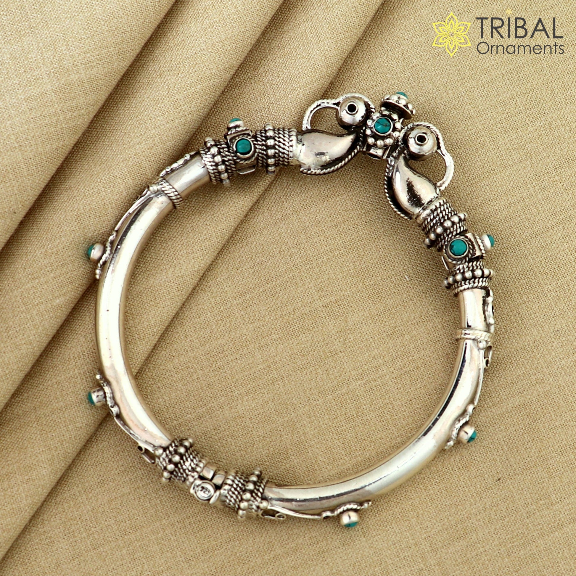 925 Sterling silver vintage peacock design turquoise stone bangle kada tribal ethnic jewelry nsk591