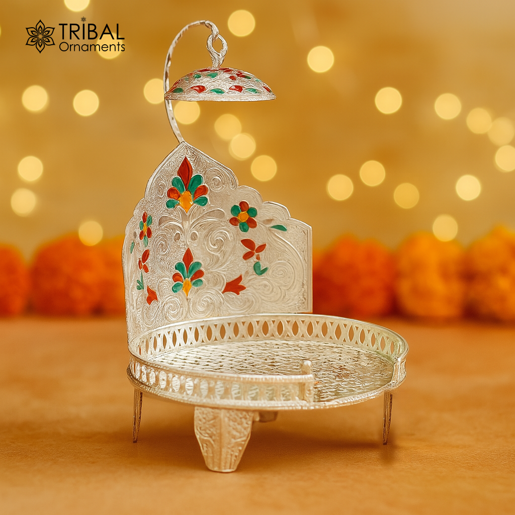 925 sterling silver handmade vintage style Sinhasan, God throne, god statue's chair Singhasan, temple puja Aasan chouki article su568