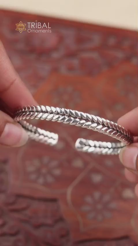 925 sterling silver handmade wheat style adjustable cuff kada bracelet, wrist jewelry for boy's and girl's, best gifting cuff111