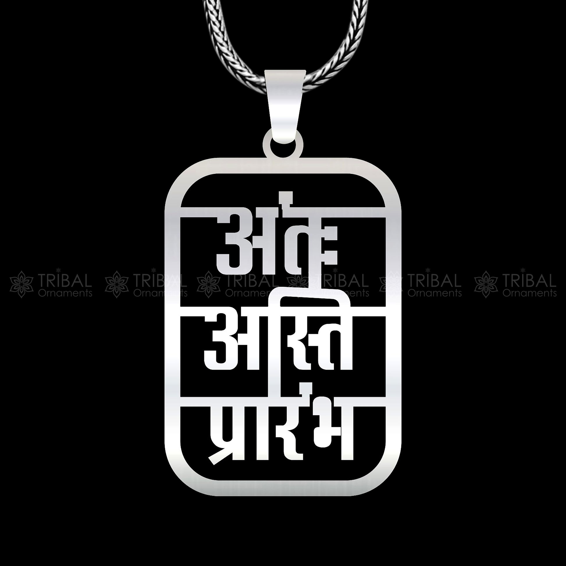 925 sterling silver handmand Antah Asti Prarambh pendant nsp894