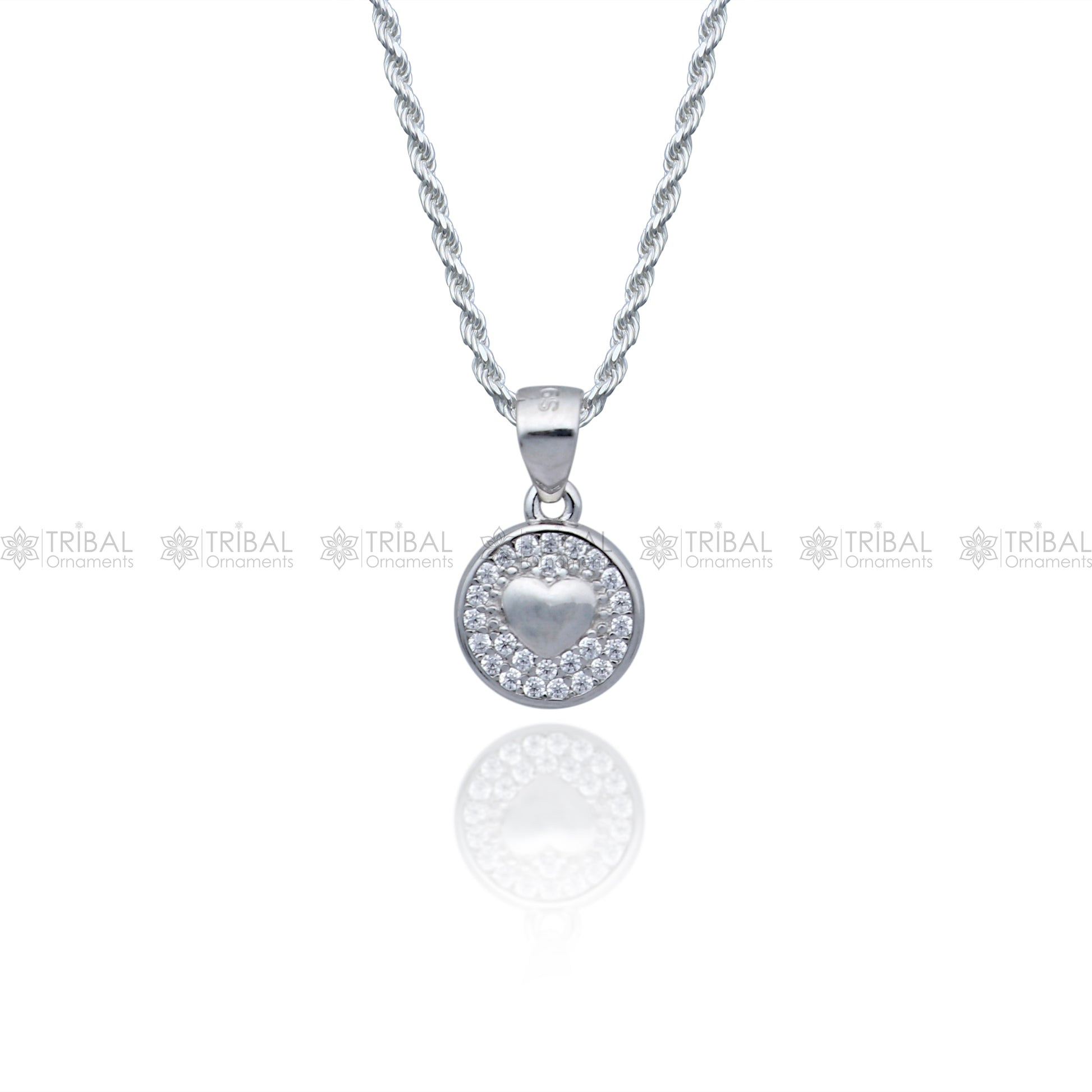 925 Sterling silver Heart shape diamond cubic zirconia stone pendant nsp977