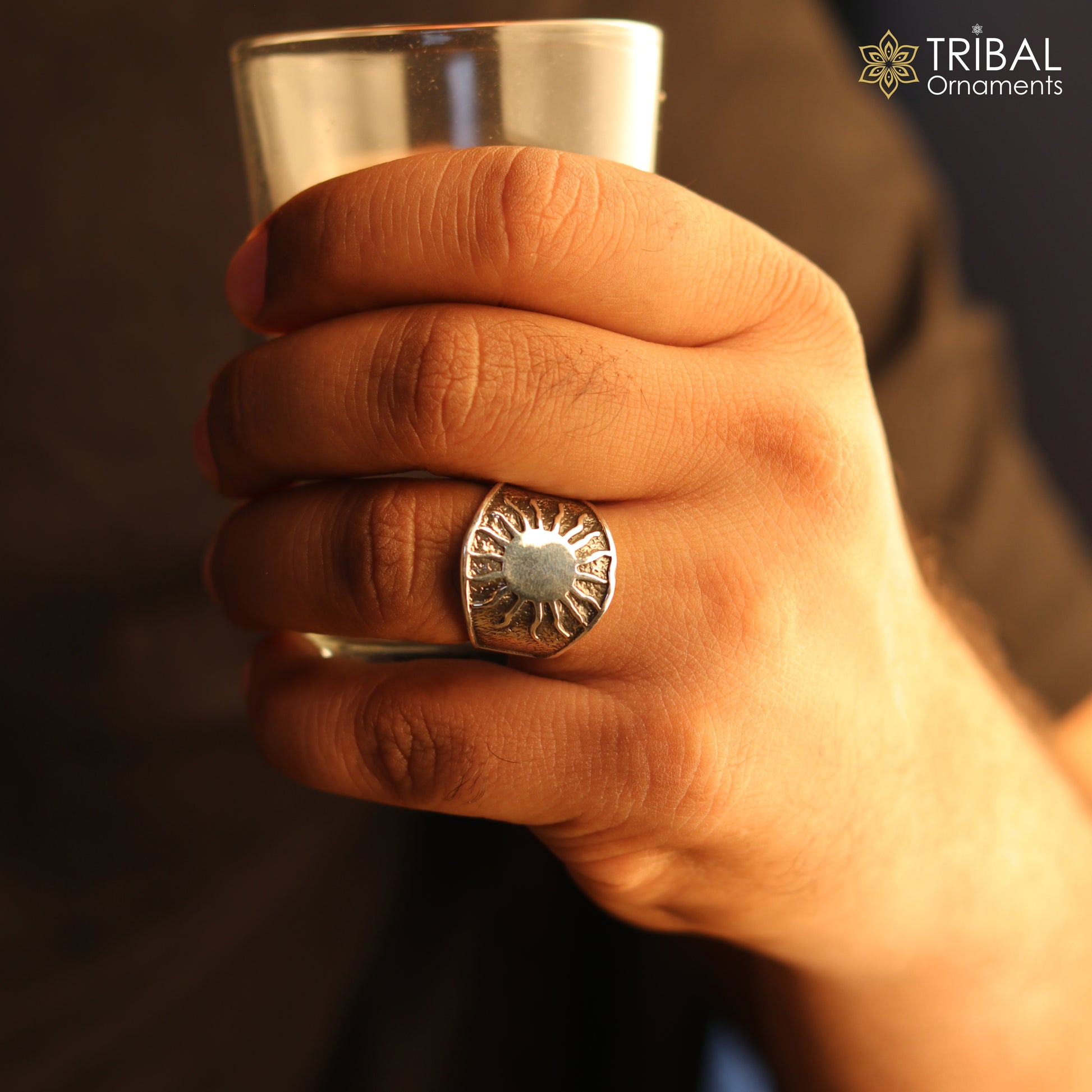 925 sterling silver heavy sun design ring men's Jewelry sr763