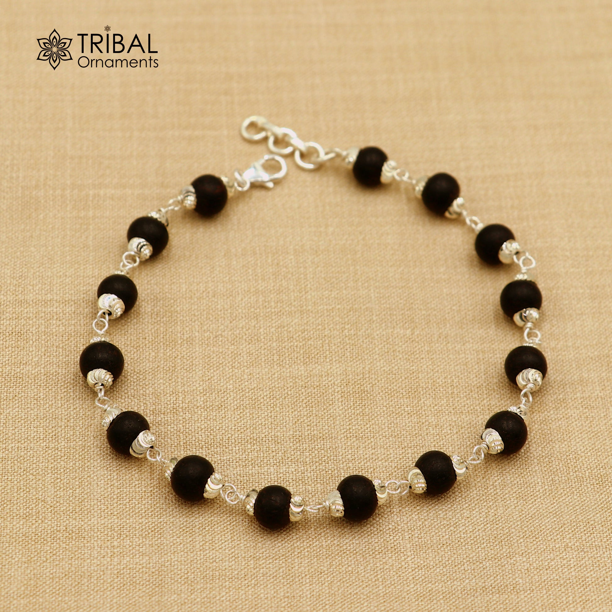 925 Sterling silver karungali black beads bracelet for unisex jewelry sbr784