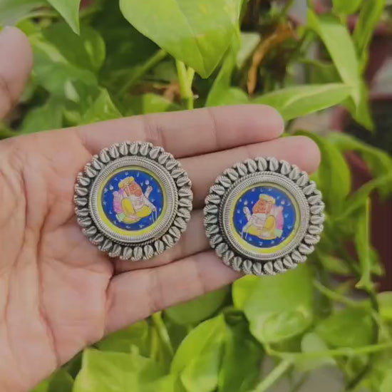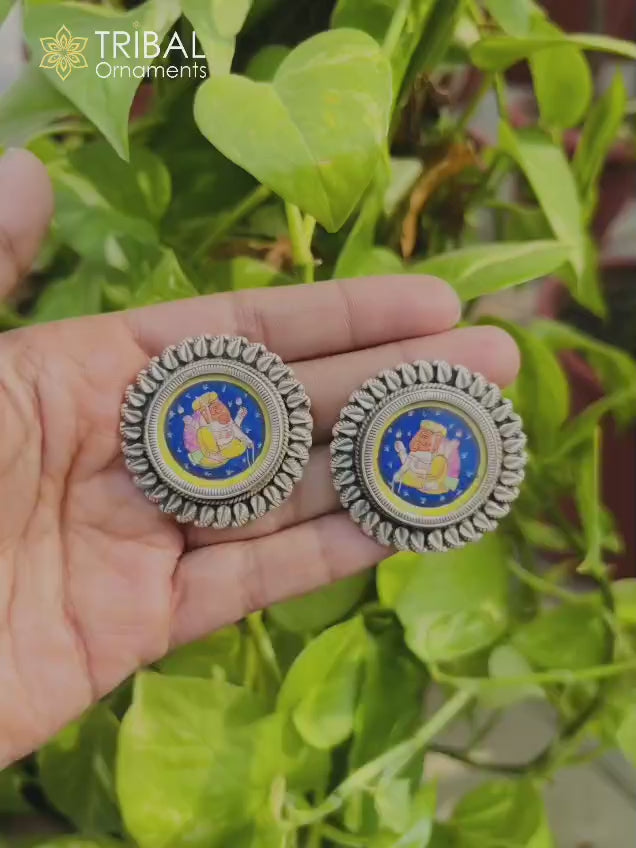 925 sterling silver lord Ganesha painting miniature art Painting hoops earring s1338