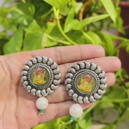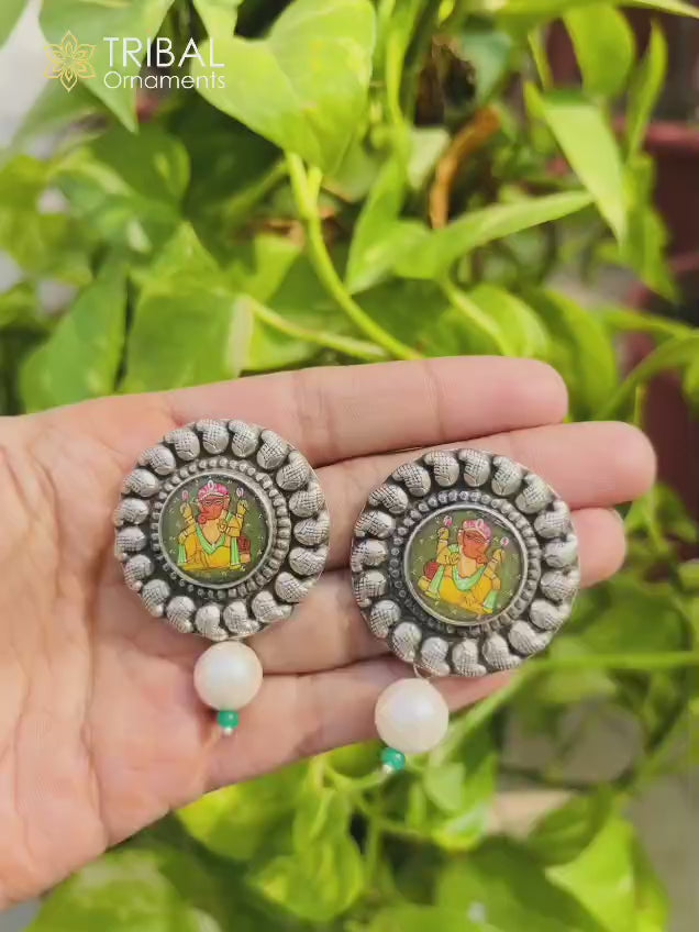 925 sterling silver lord Ganesha miniature art Painting hoops earring s1364