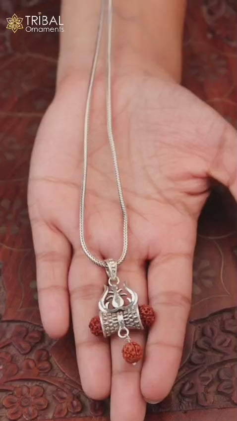 925 sterling silver Lord shiva trident shape rudraksha beads pendant pendant for unisex ssp317