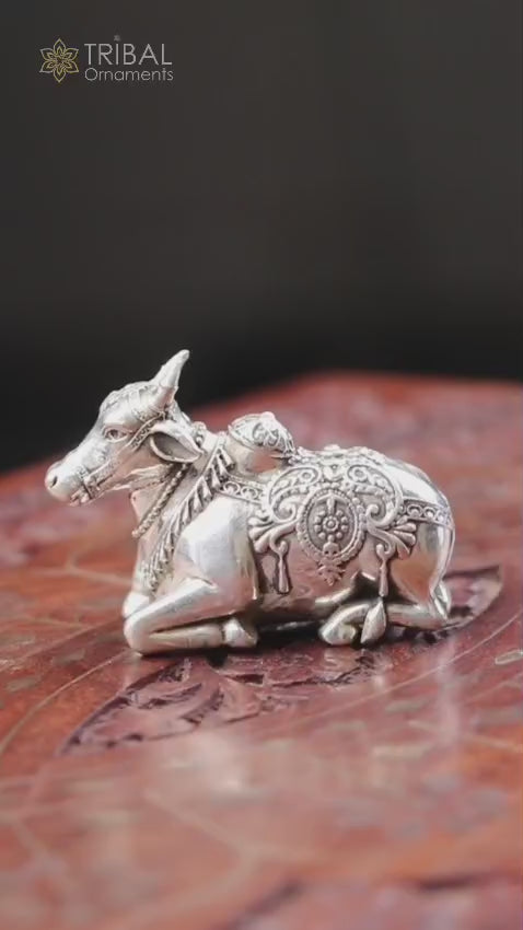 925 Sterling silver Lord Shiva Vahan Nandi Maharaj handmade small article for puja, best gift for lord Shiva, divine Nandi statue su998