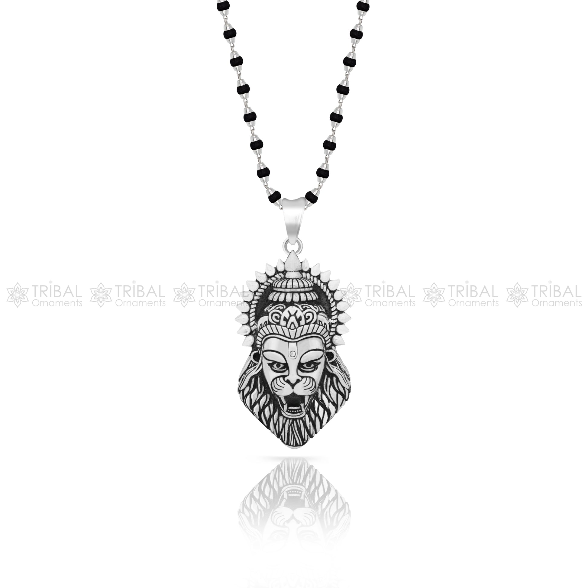 925 Sterling silver Lord Vishnu avatar Narsimha pendant with Black and white rosary beads (tulsi mala) meditation necklace NSP813