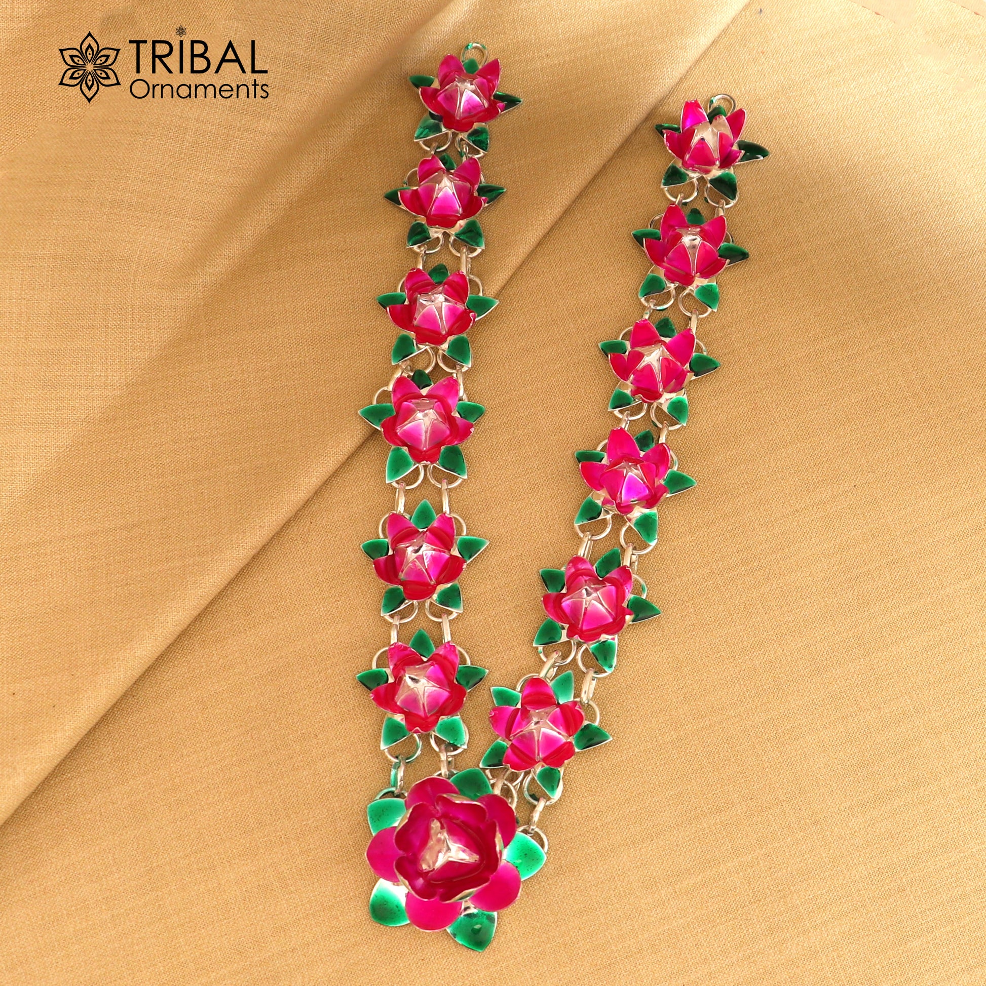 925 sterling silver lotus flower design necklace for idols or god statues a jewelry set763