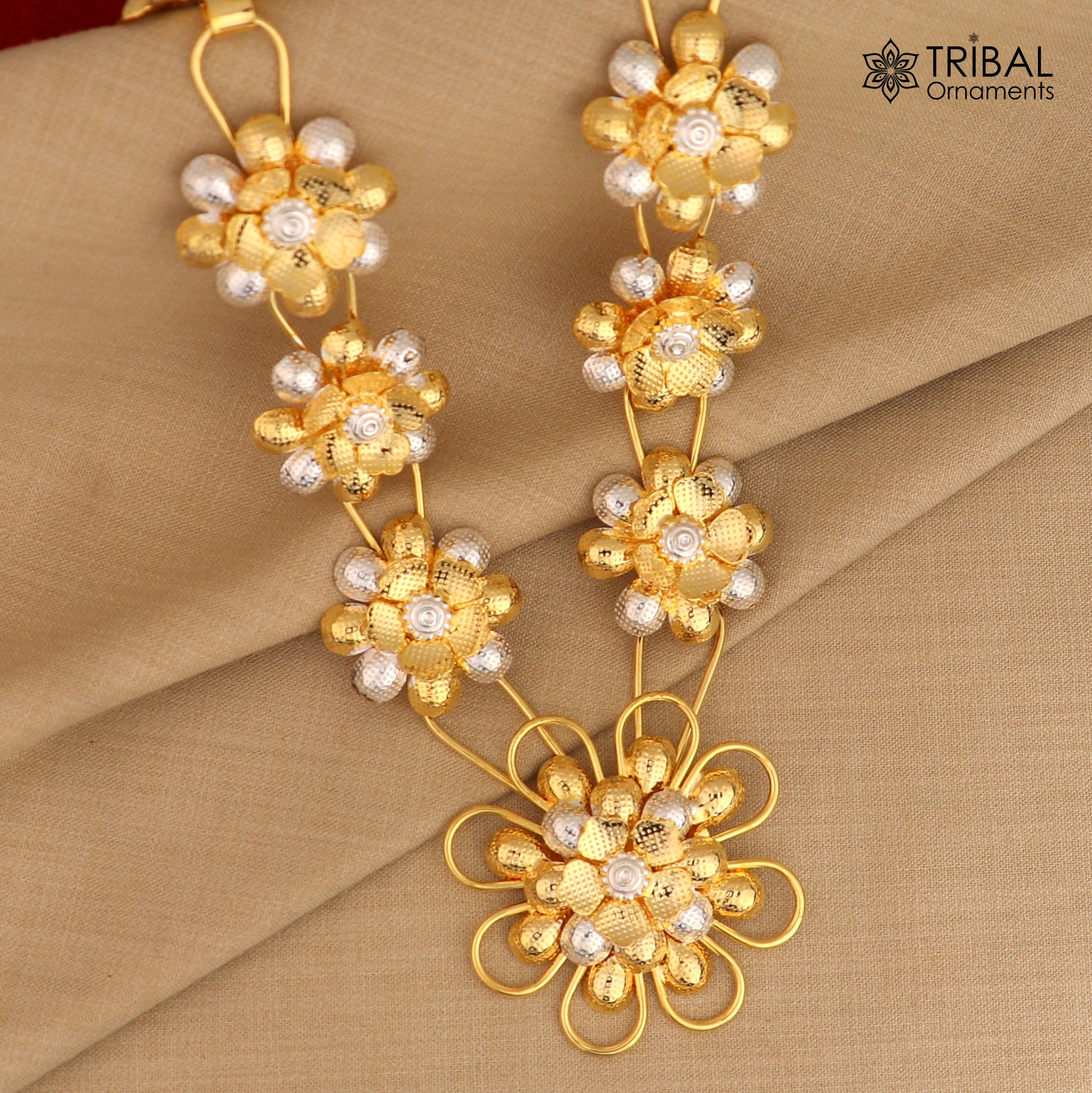 Gold polished flower necklace ,suitable for women or for adorning idol statues