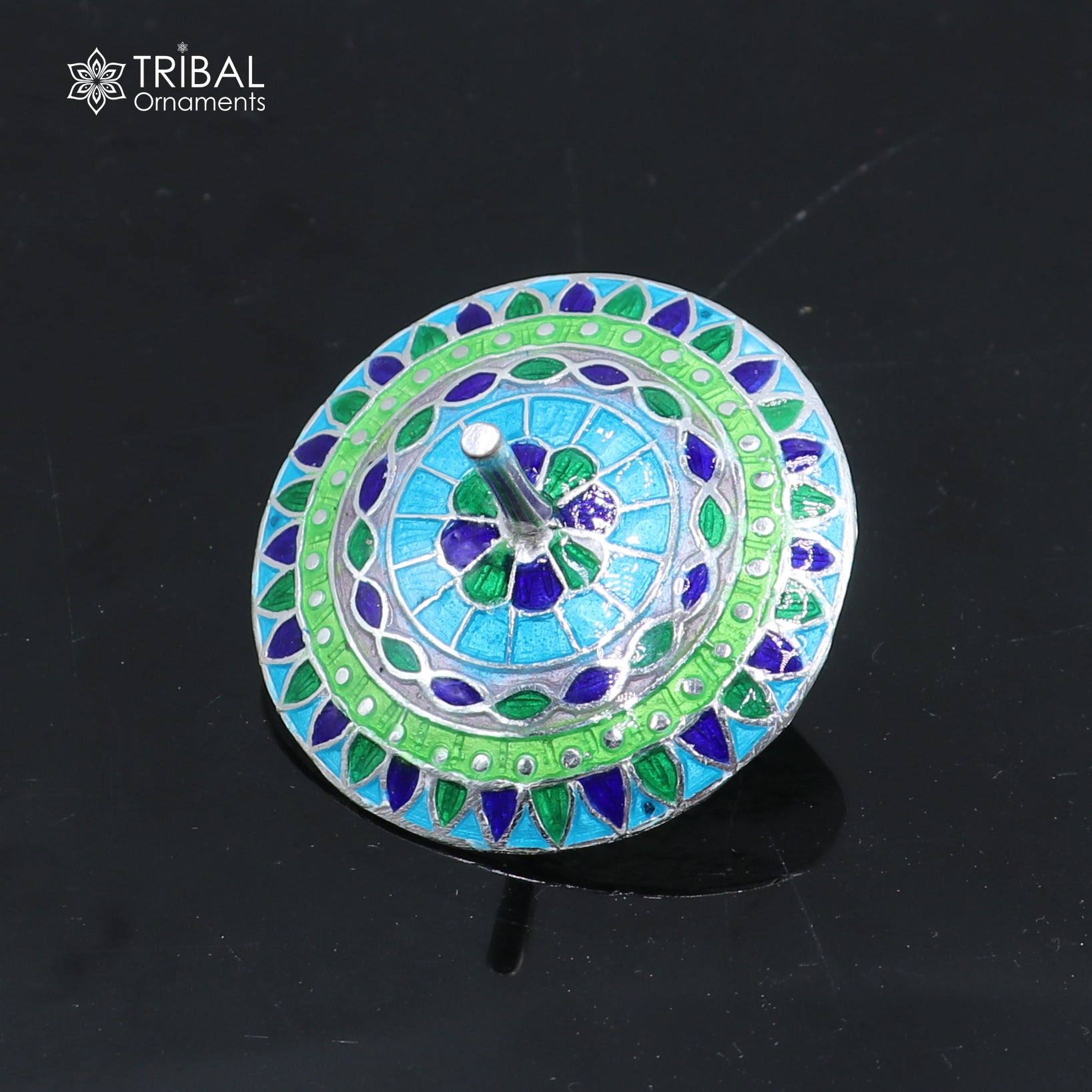 925 sterling silver mandala meenakari design Firki or Lattu toy silver toy for your baby Krishna idols article art852