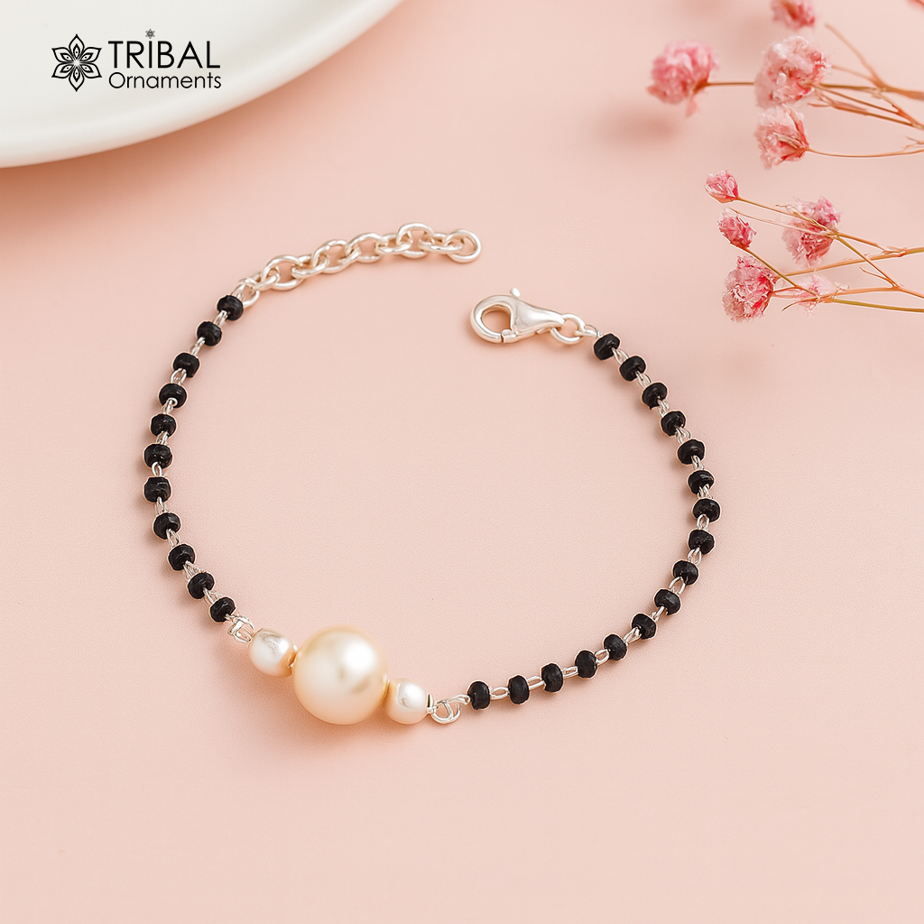 925 sterling silver modern cultural black beaded all sizes bracelet Combo use bracelet or anklets, best Mangalsutra bracelet sbr454