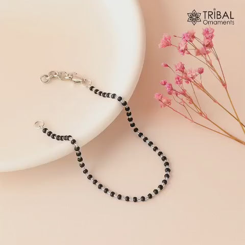925 sterling silver modern cultural black beaded all sizes girls bracelet Combo use bracelet or anklets, best Mangalsutra bracelet sbr459