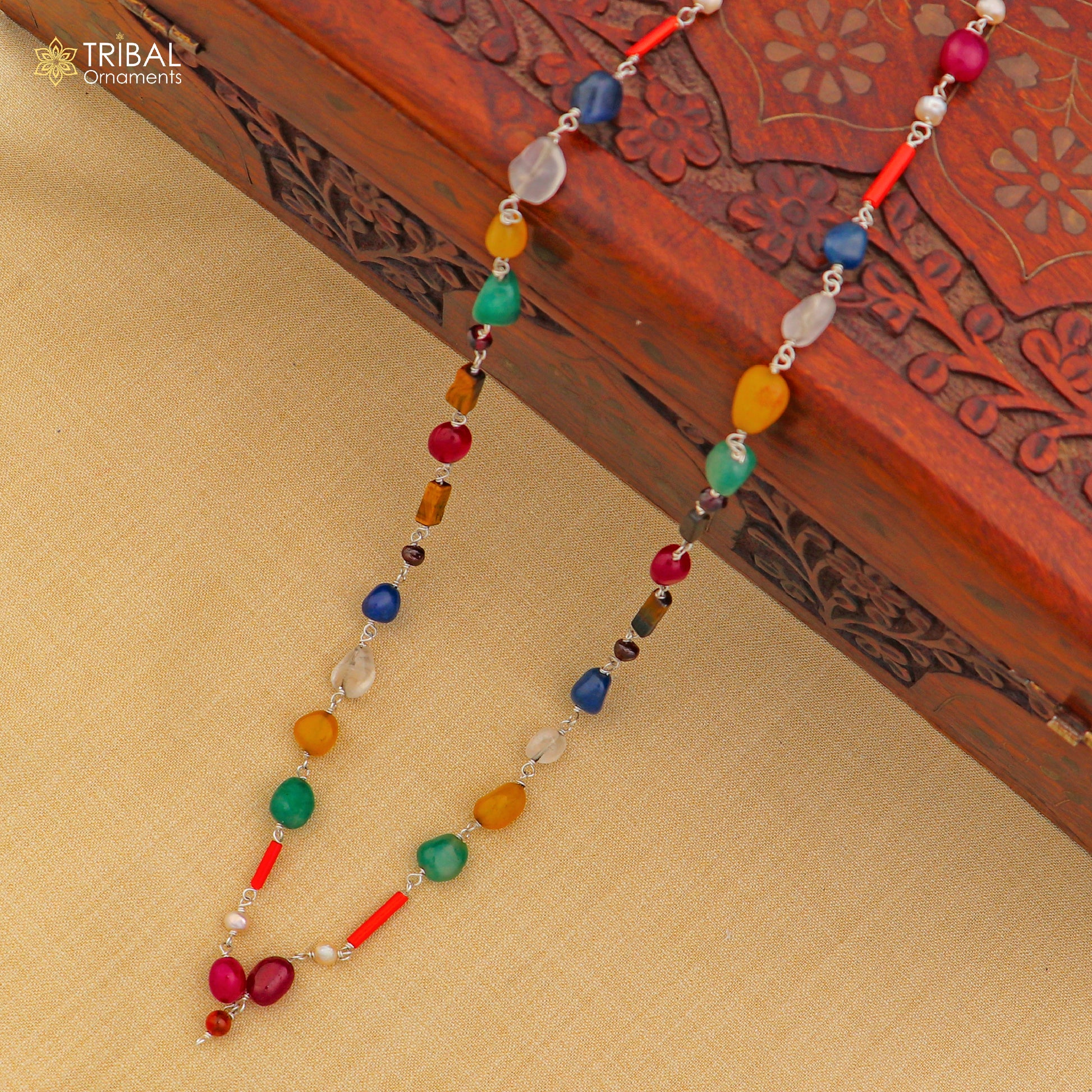 925 sterling silver Navratna chain necklace for unisex jewelry ch625