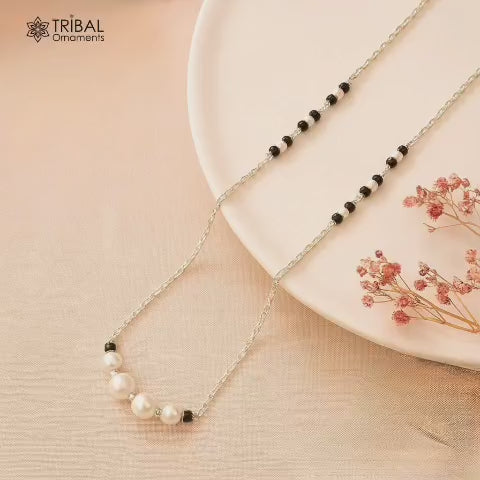 925 sterling silver pearl beaded chain necklace and vintage antique silver ball style pendant Mangalsutra ms129