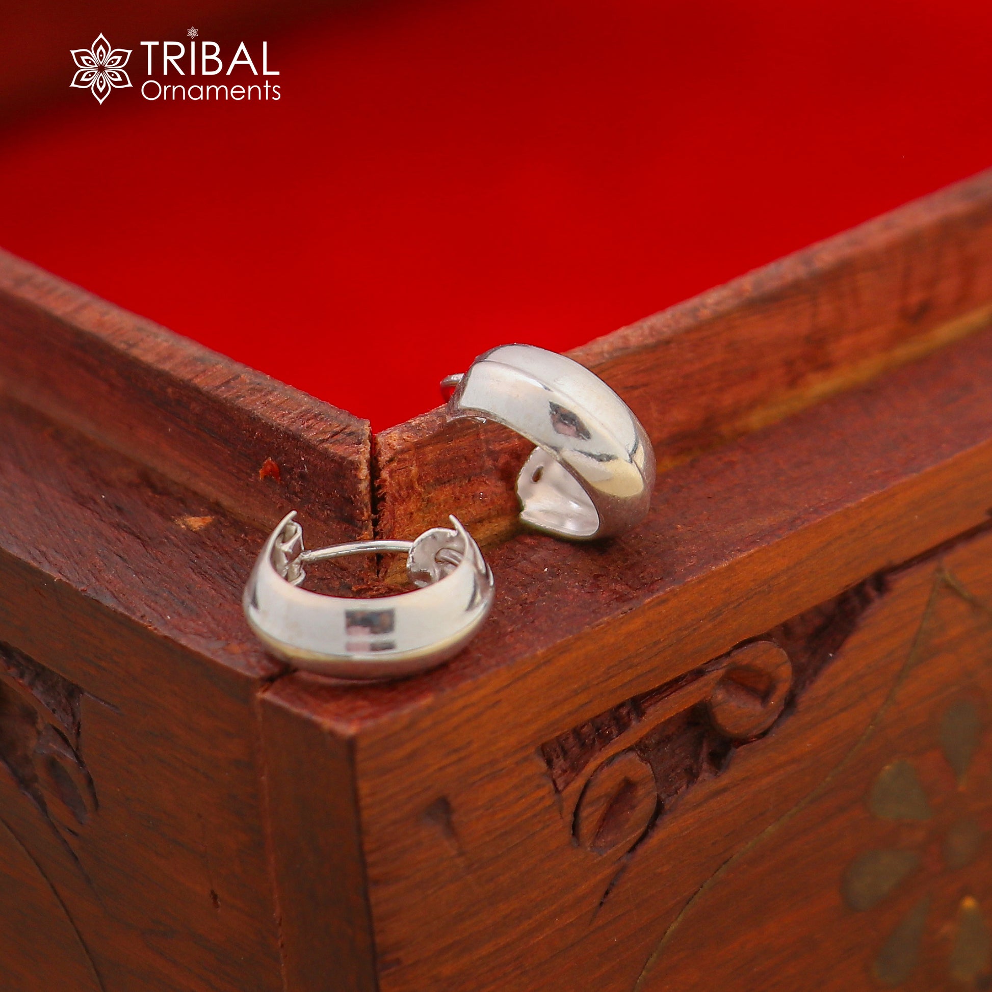 925 sterling silver plain d shape bali hoops earrings, tribal ethnic jewelry er233
