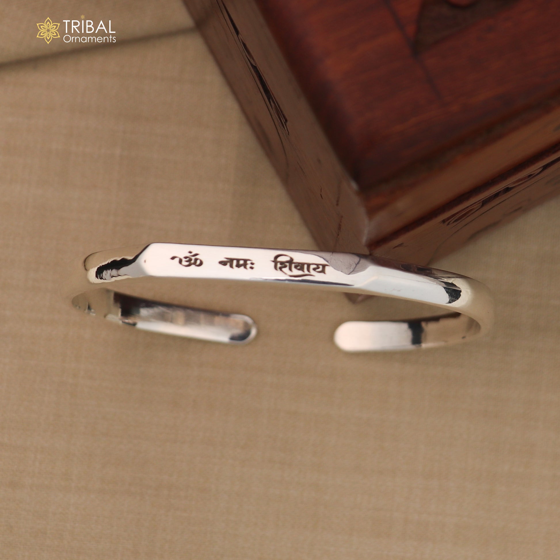 925 sterling silver om namah shivay shiny bright bracelet kada personalized adjustable for men's or girls kada cuff258