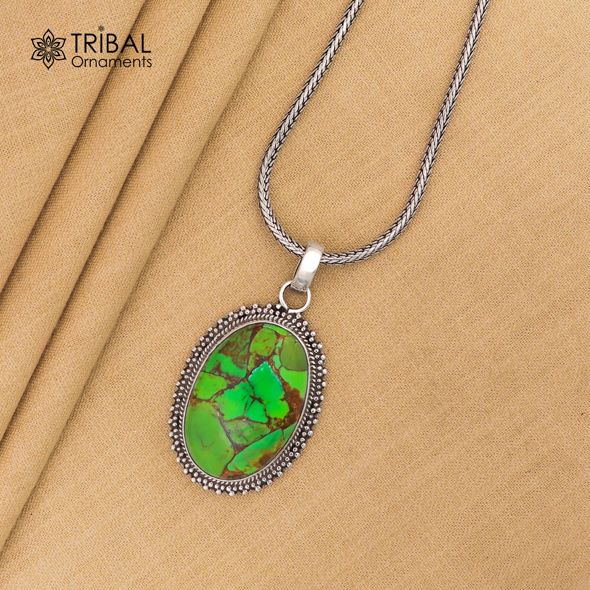 925 sterling silver round shape green turquoise pendant unisex tribal jewellery nsp1056