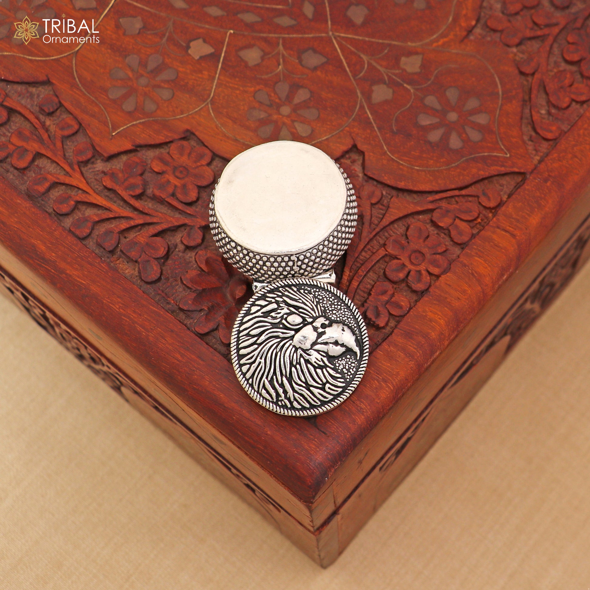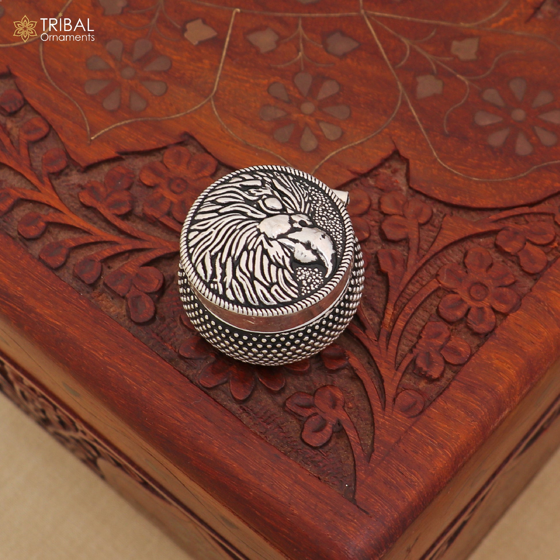 925 sterling silver round bird design oxidized trinket,casket, Sindoor box brides jewelry stb907