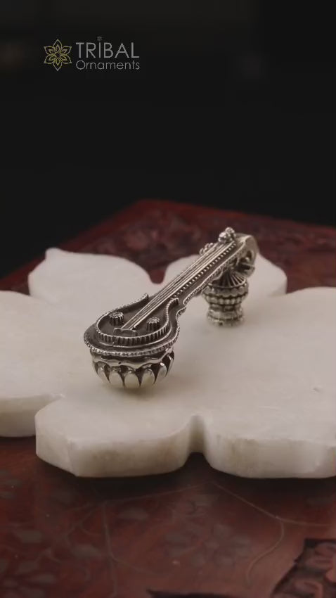 925 sterling silver Saraswati Veena, Silver musical instrument Veena for Goddess Sharda, best gifting puja article for hindu temple art42