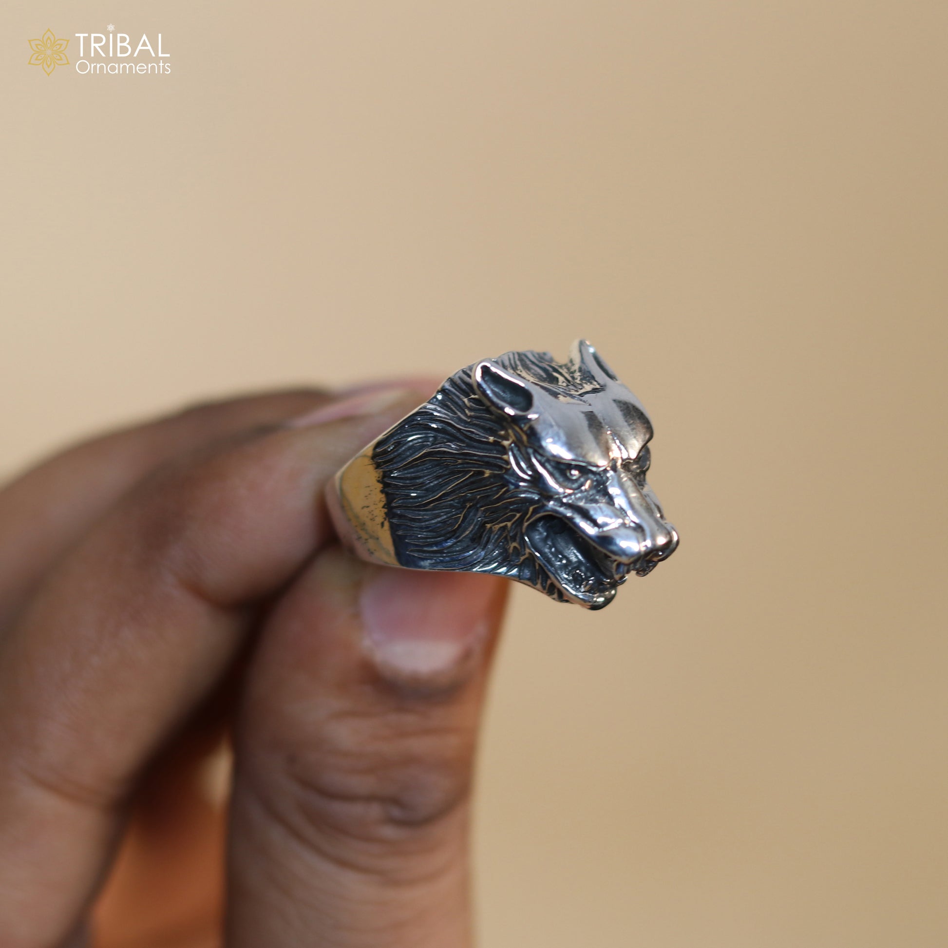 925 sterling silver wolf face design ring men's Jewelry sr768