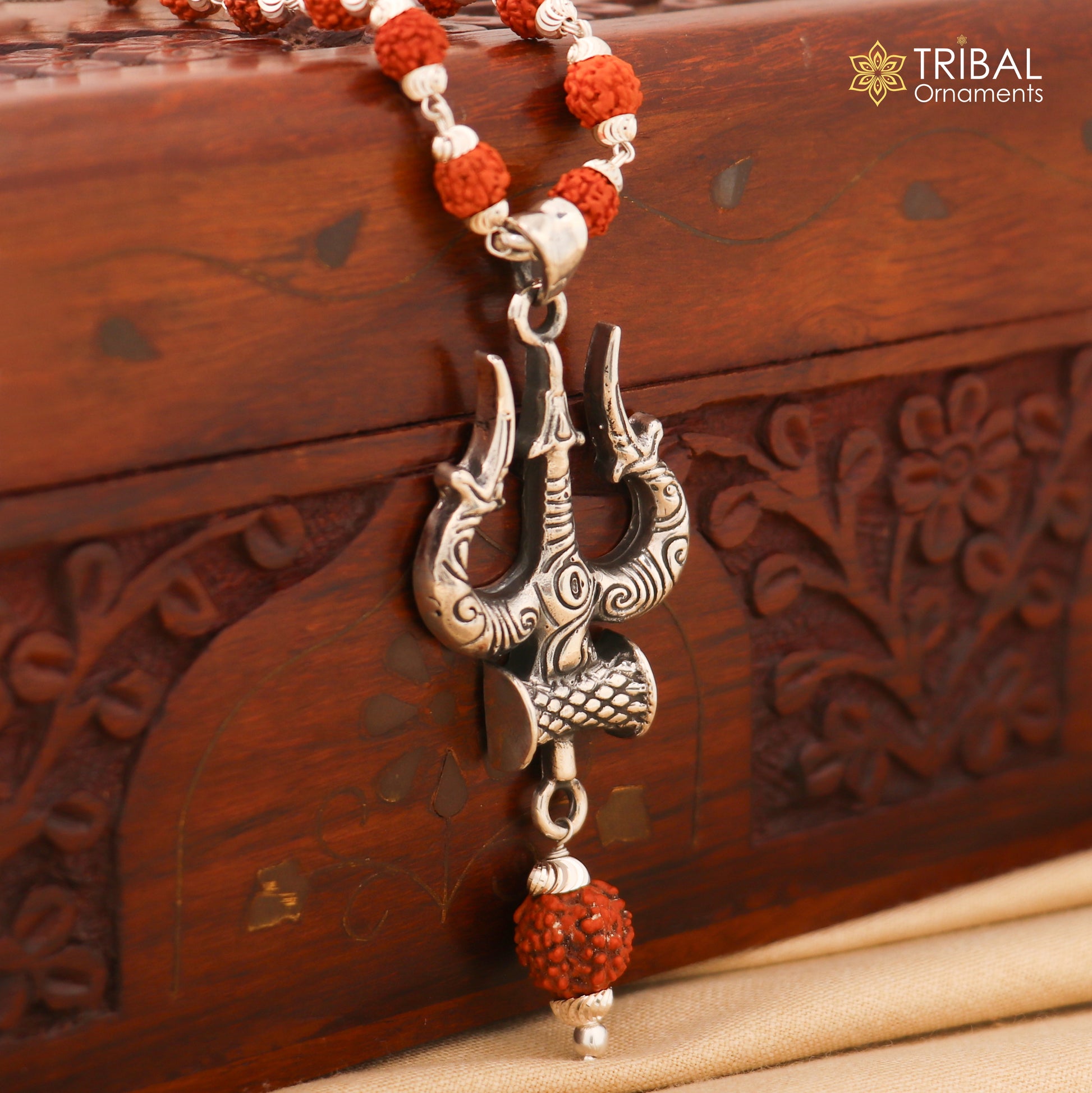 925 sterling silver Shiva trident pendant with Rudraksha mala(optional) meditation jewellery nsp1090