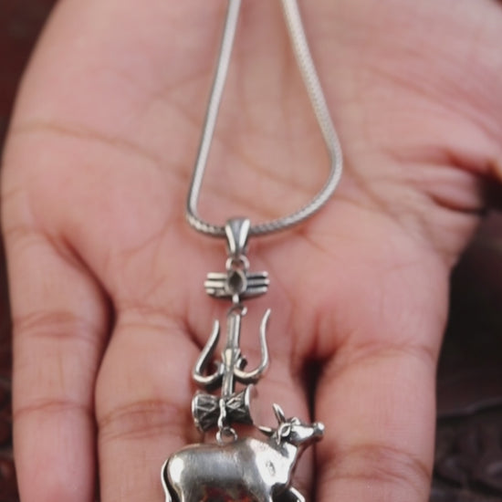 925 sterling silver Shiva trident with damru or Nandi Pendant Varanasi Prabhas movie pendant nsp1105
