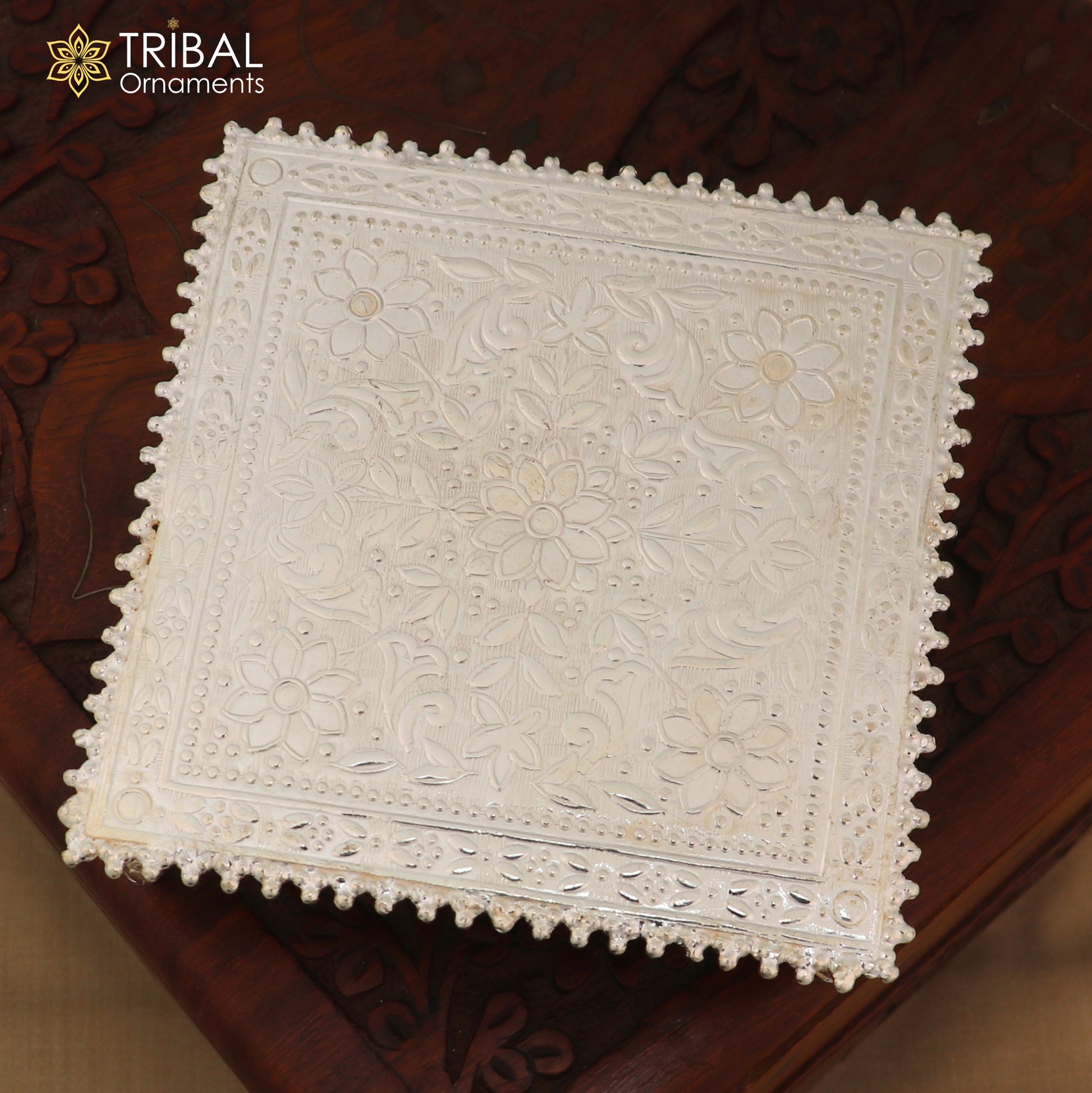 925 Sterling silver square shape bazot / chouki pooja utensils su1379