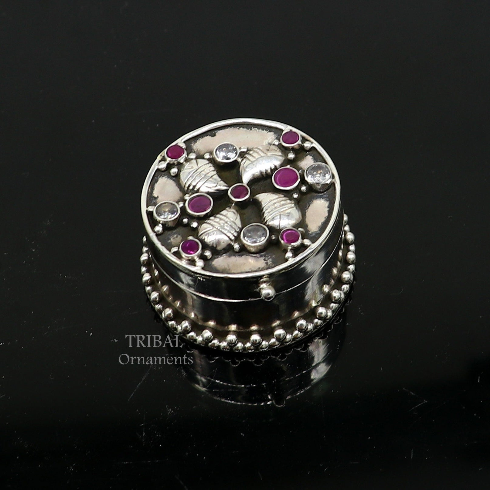 925 sterling silver Stunning stone work design cz stone trinket box, kajal eyeliner box, Sindur box brides gift silver box stb745