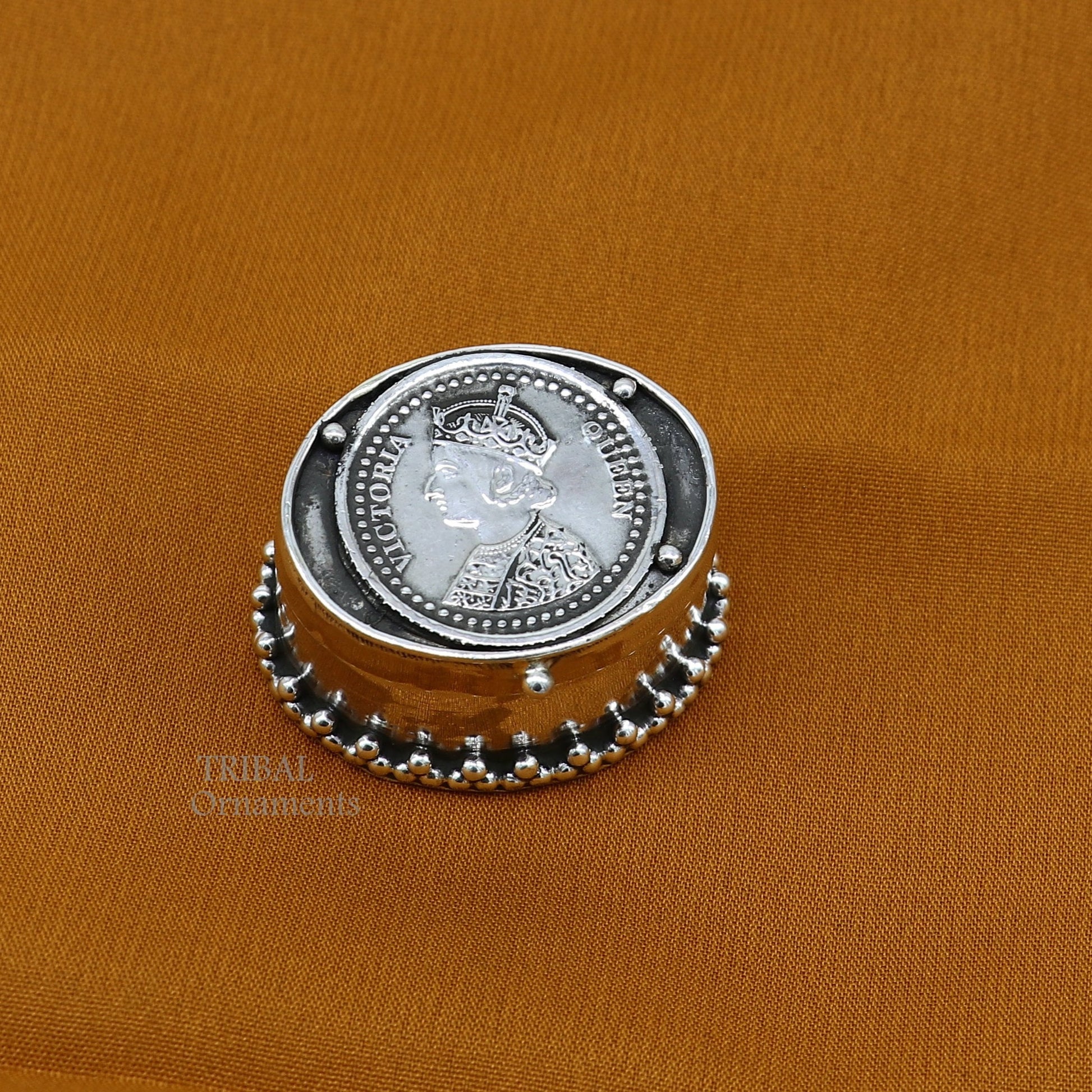 925 sterling silver Stunning Victoria queen coin design trinket box, kajal eyeliner box, Sindur box brides gift silver box stb748