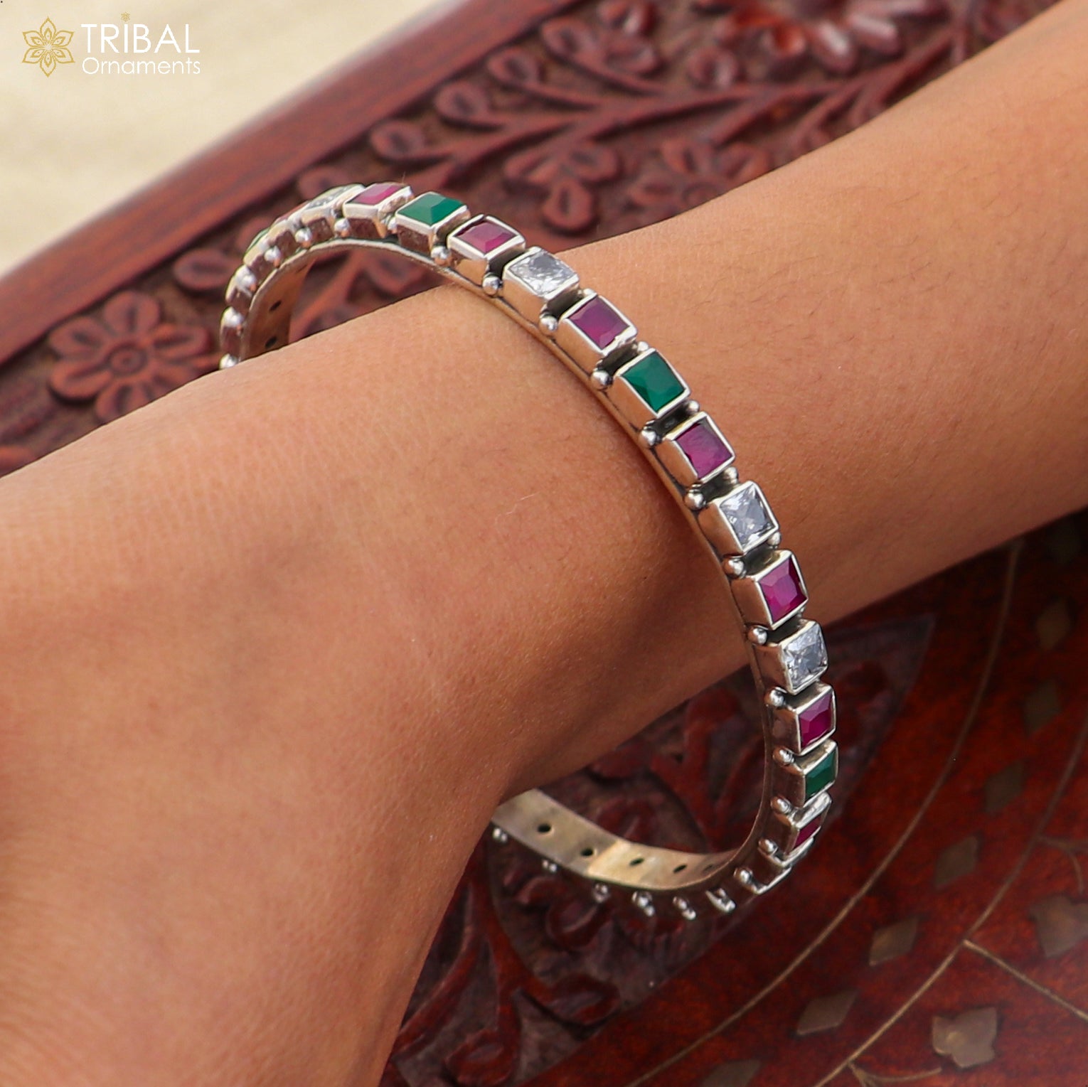 925 sterling silver stylish cut stone bangle bracelet jewelry ba445