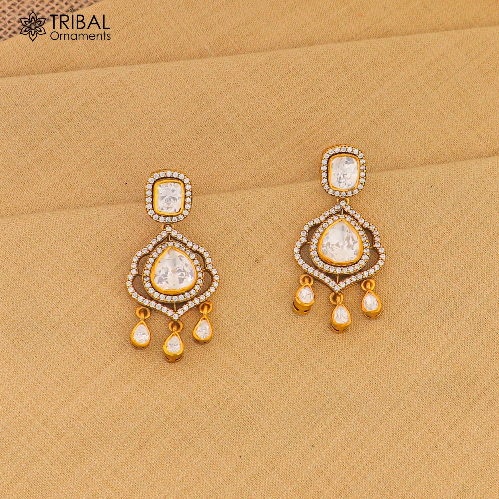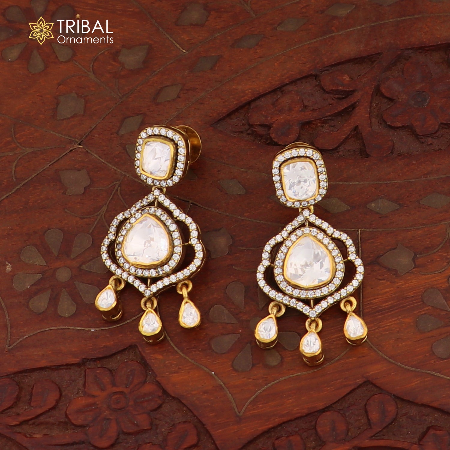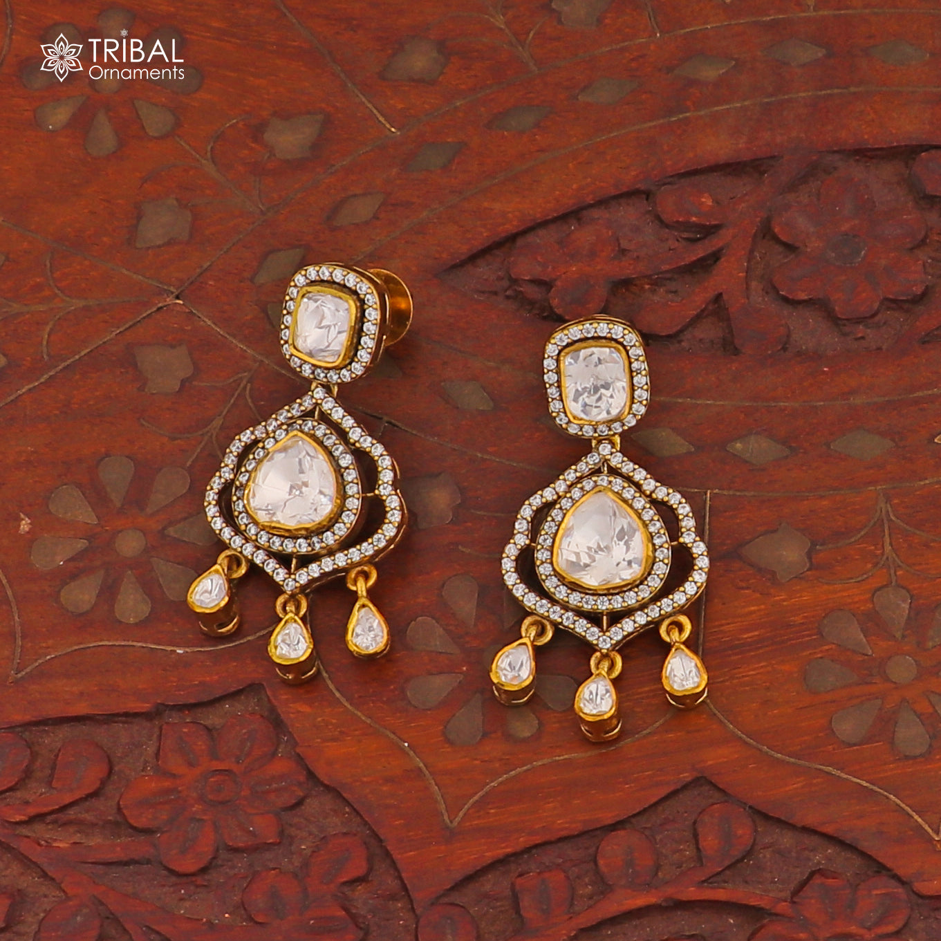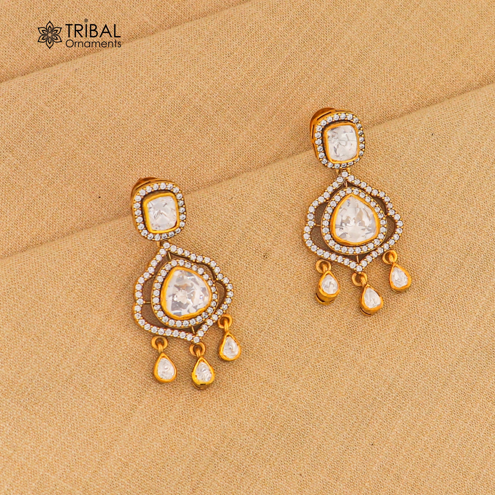 925 sterling silver stylish design white kundan stud polki style earring er213