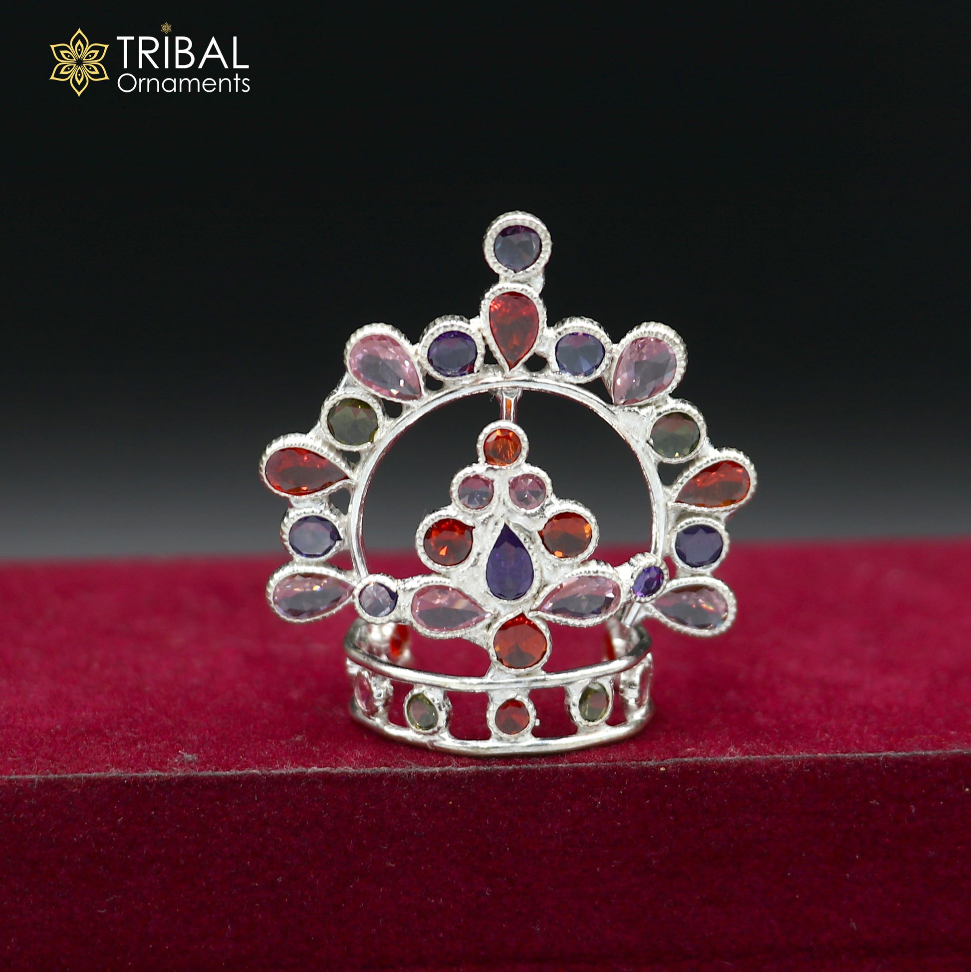 925 sterling silver stylish stone design silver mukut (crown), amazing god crown temple god art sm48