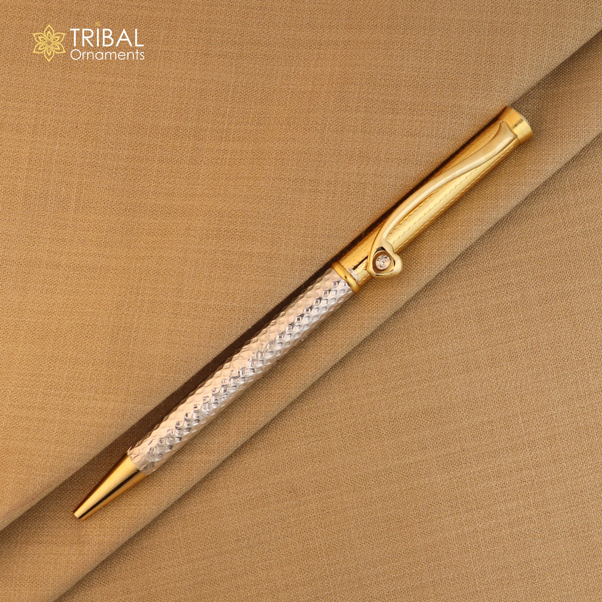 925 Sterling silver stylish stone design writing ball pen, best silver gifting article from india art843