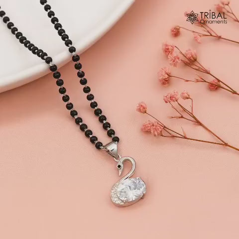 925 sterling silver Swan diamond Mangalsutra pendant, best women's girl's gifting jewelry ms77